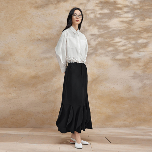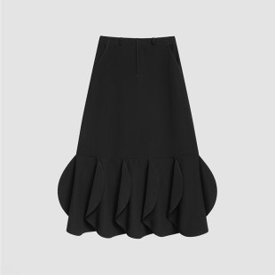 百褶拼接鱼尾毛呢裙 CHICJOJO灰色半身裙女25秋新款 优雅随型