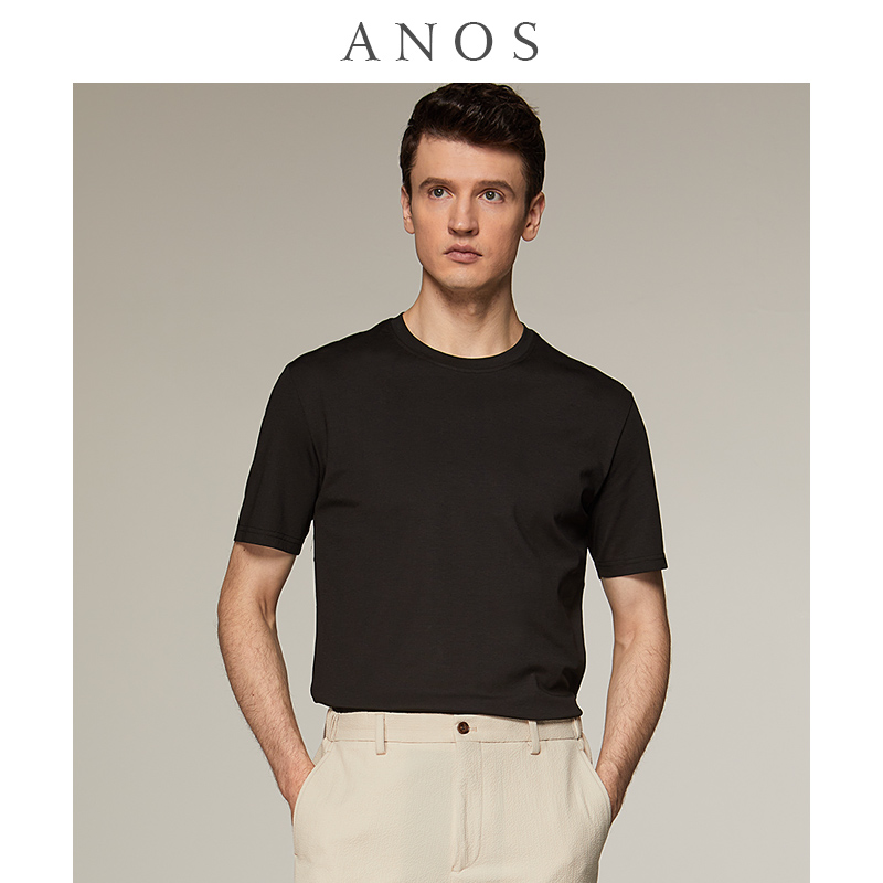 短袖 简约百搭打底衫 T恤男 罗纹圆领半袖 白色凉感弹力修身 ANOS夏季