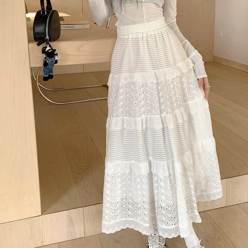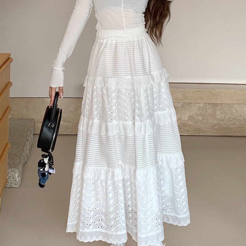 白色蛋糕裙女春秋夏2025新款 a字半身裙宽松韩系蓬蓬裙 高腰中长款