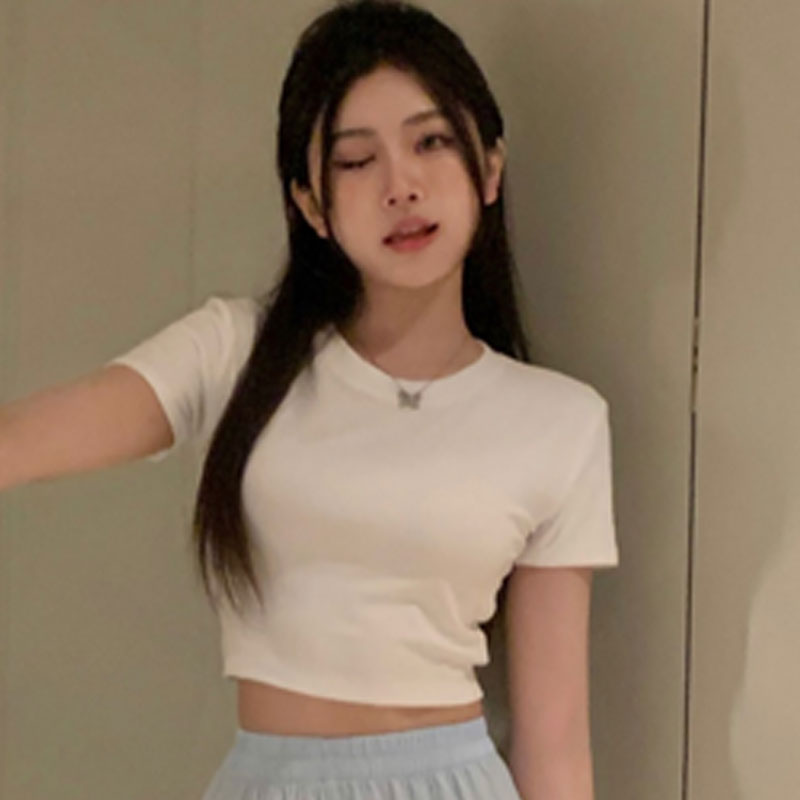 白色褶皱修身 新款 掐腰甜辣小上衣 t恤女2025夏季 性感露背系带短袖