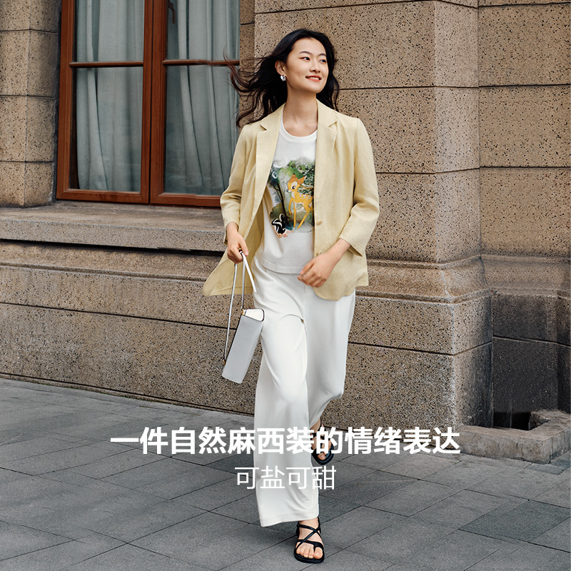 外套女商场同款 播淡人西装 宽松小西服BDR2XD0684 法国雨露麻