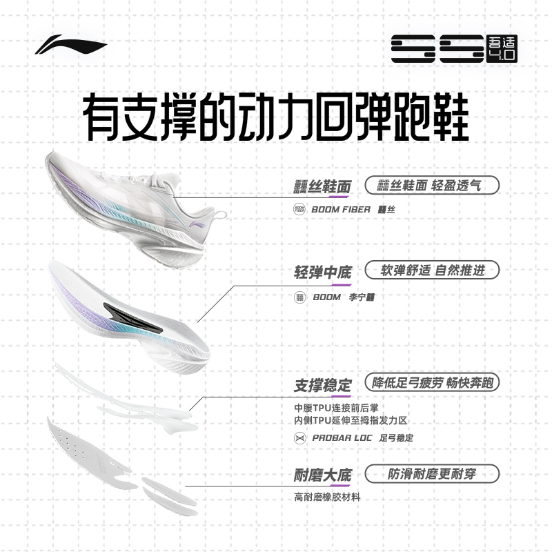 女款 李宁吾适4.0 减震䨻丝透气中考跳绳轻便软底专业运动跑步鞋