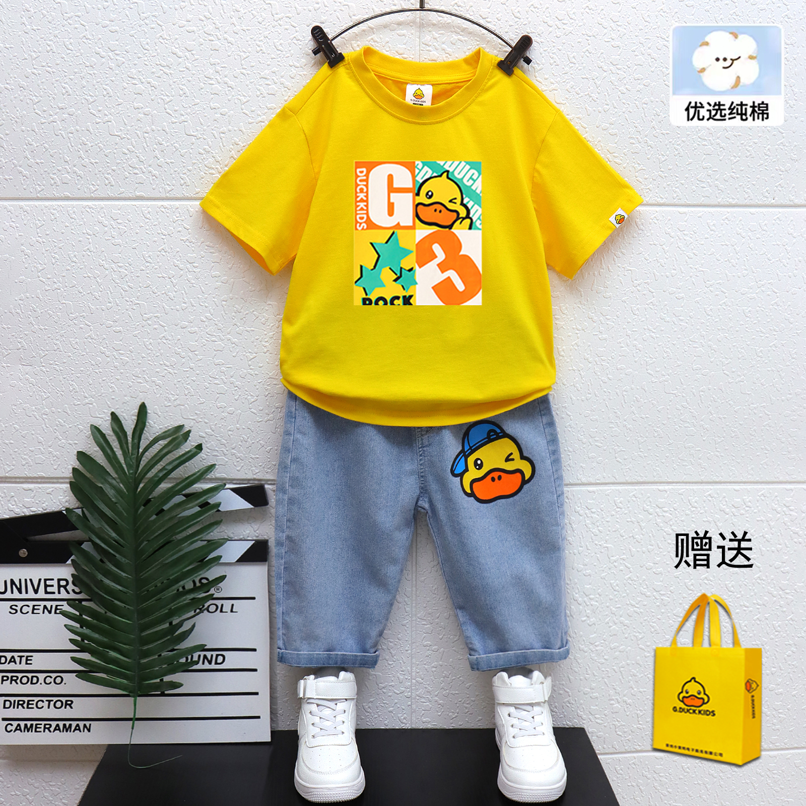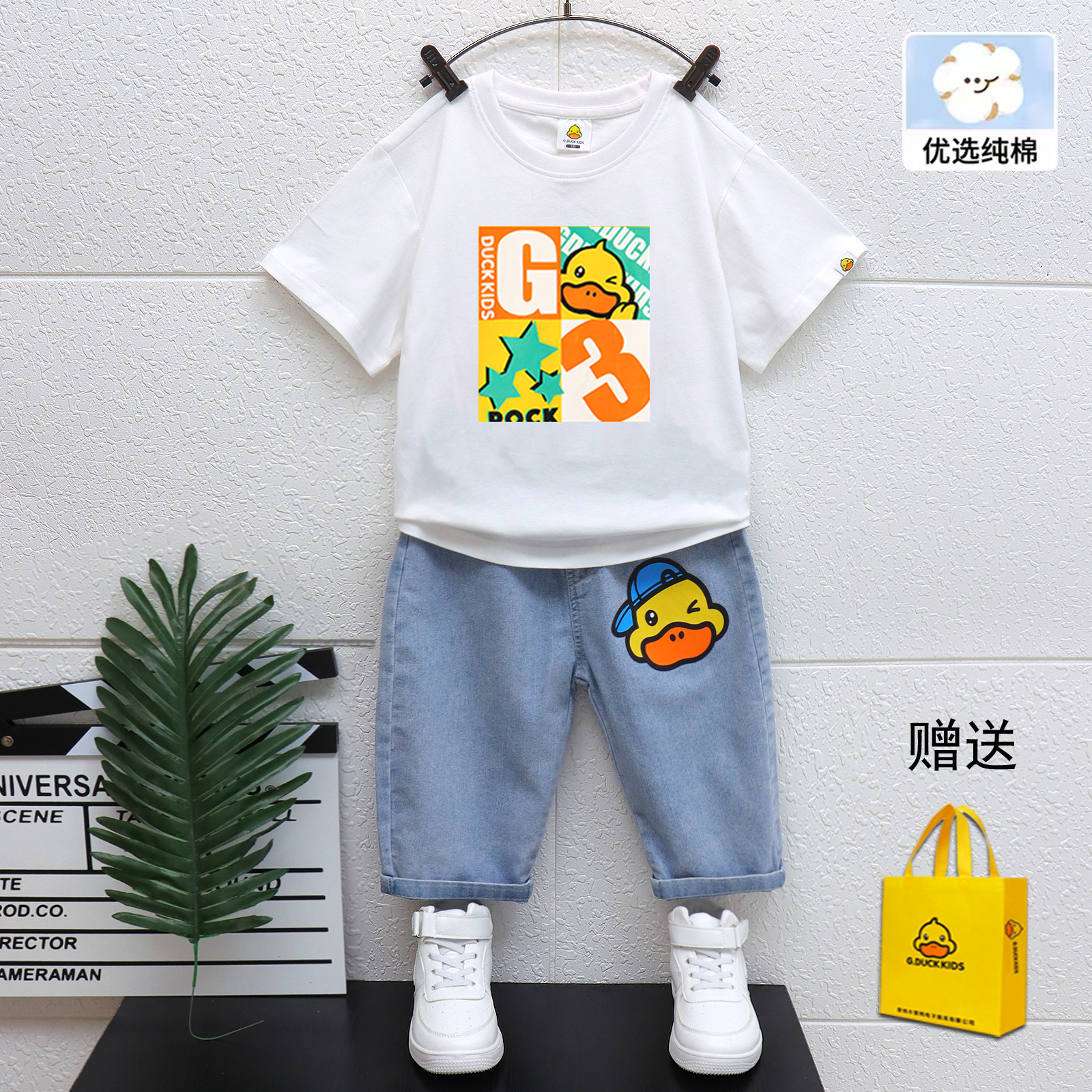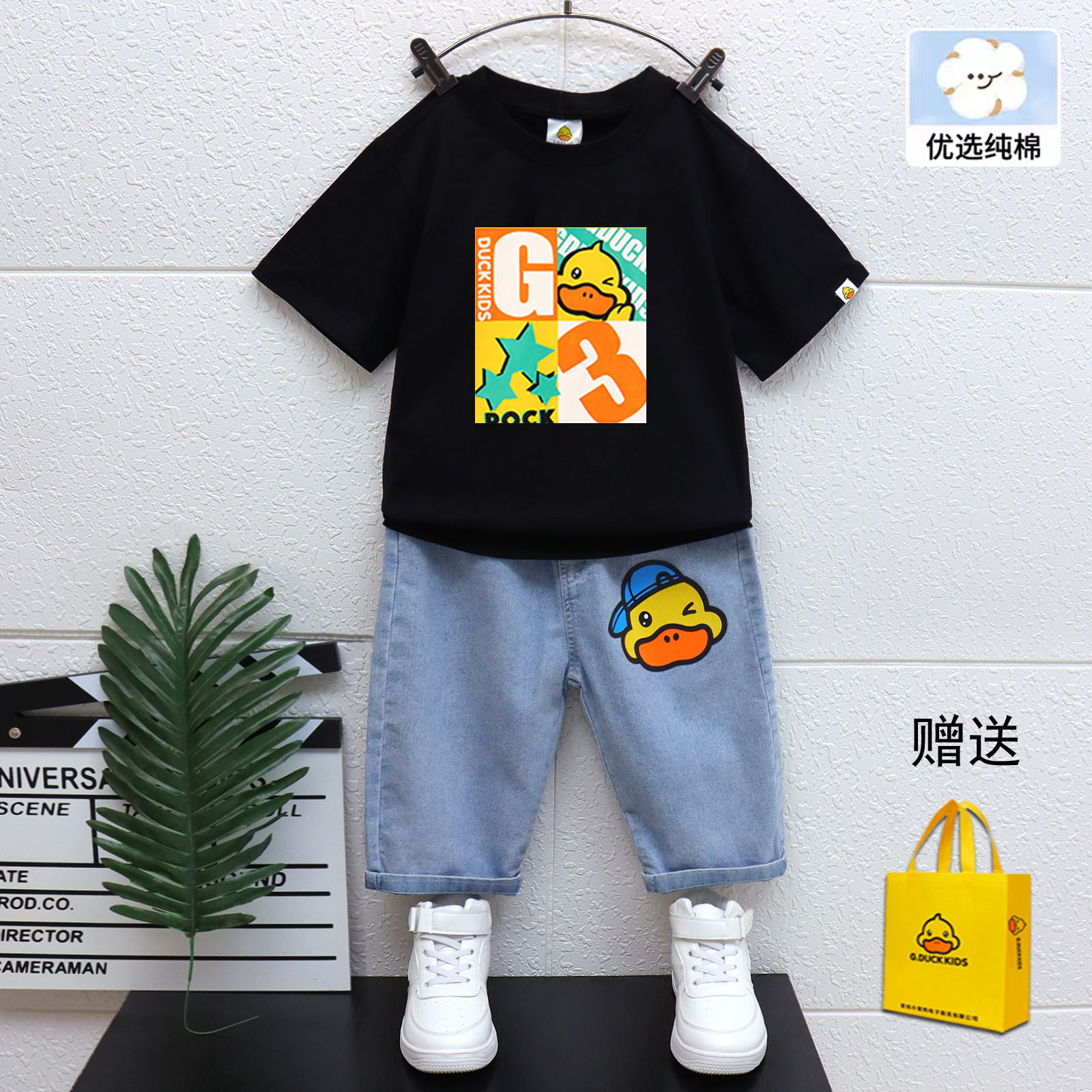 男童夏季 洋气休闲百搭打底衫 2025新款 夏装 男孩日常短袖 小黄鸭套装