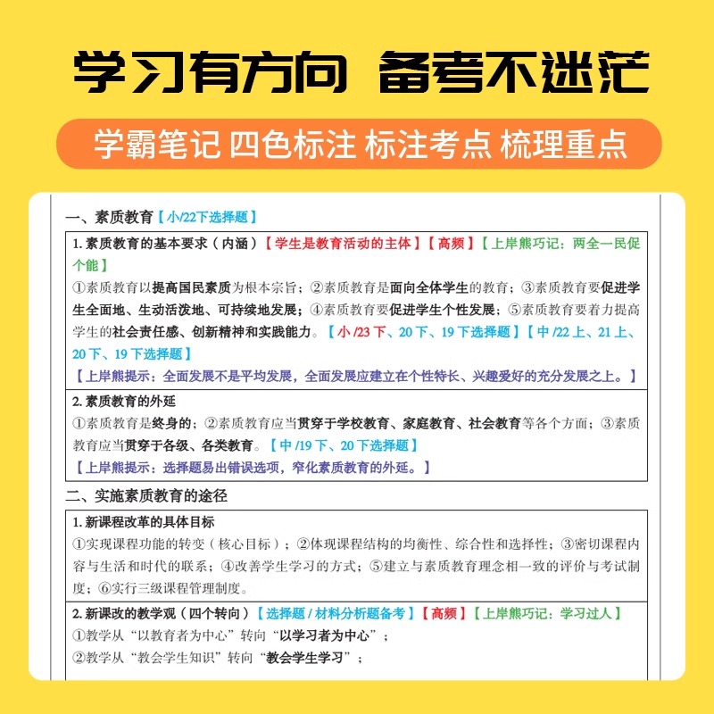 上岸熊小学教资2024年教资考试资料教师证资格用书学霸笔记三色笔记小学初中幼儿园教材真题综合素质综合素质教学知识与能力