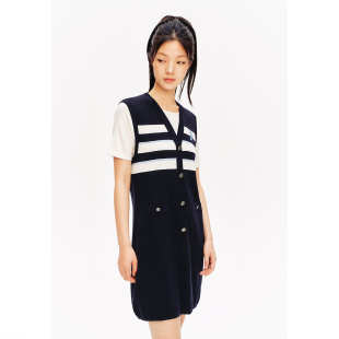 连衣裙女 优雅显瘦针织上衣拼接背心裙中长裙套装 ONLY2025秋季 新款