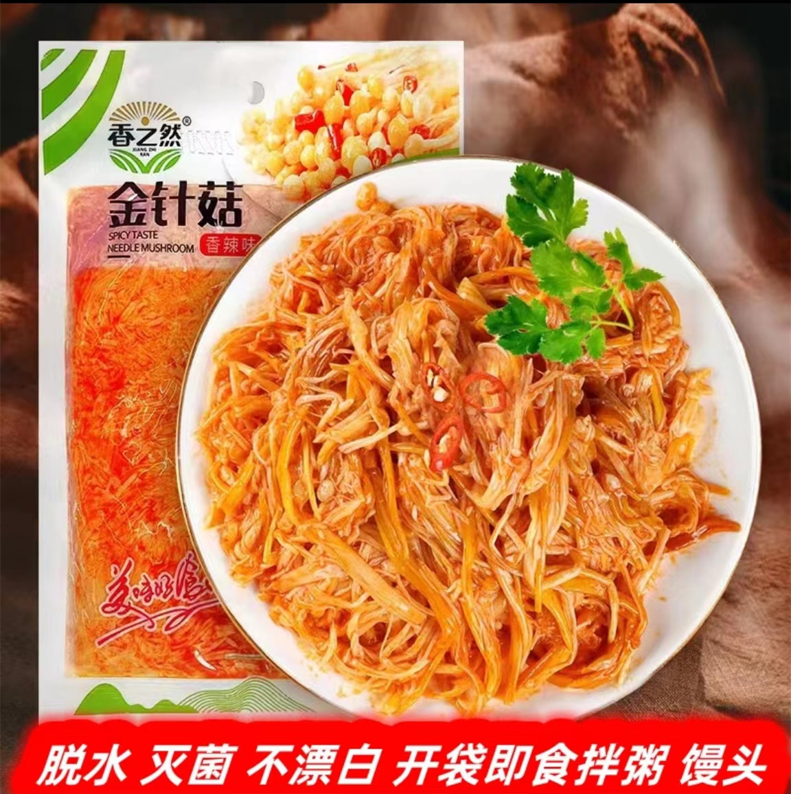 金针菇开袋即食香之然香辣金针菇下饭菜麻辣红油小零食大袋200g