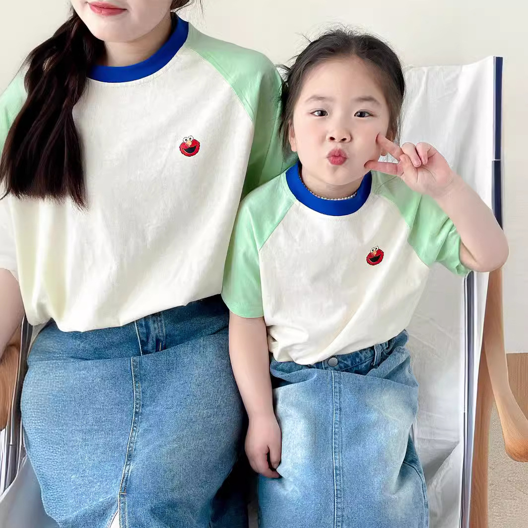 全家福拼色短袖 一家三口亲子装 潮炸街母子装 2025新款 亲子T恤 夏季