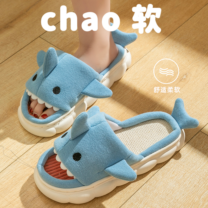 拖鞋 卡通亚麻办公室吸汗透气布底 女春秋棉麻居家室内可爱地板四季