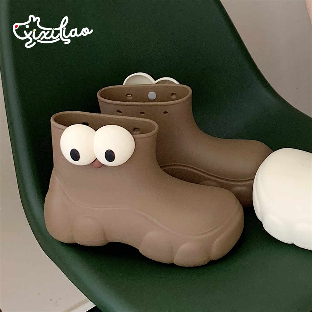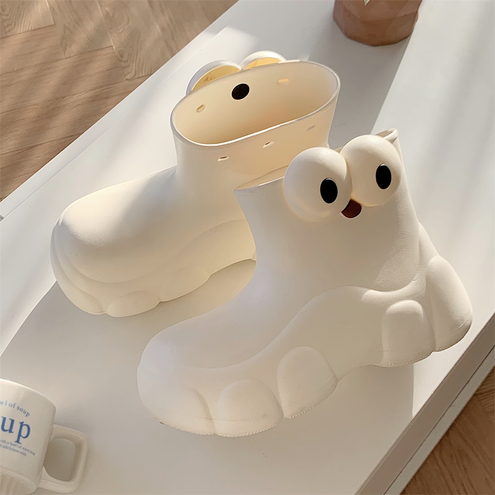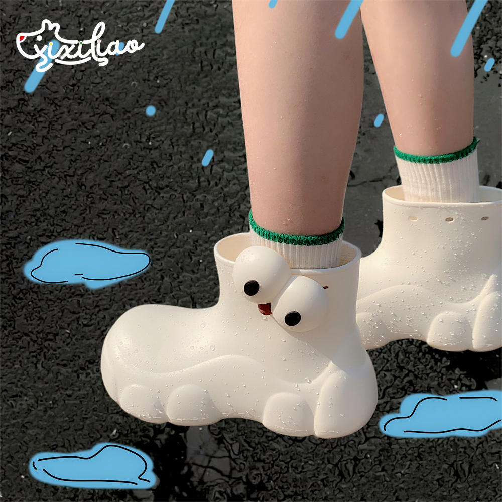 厚底防滑创意搞怪大眼睛成人雨靴四季 女 通用室外玩水防滑可爱雨鞋