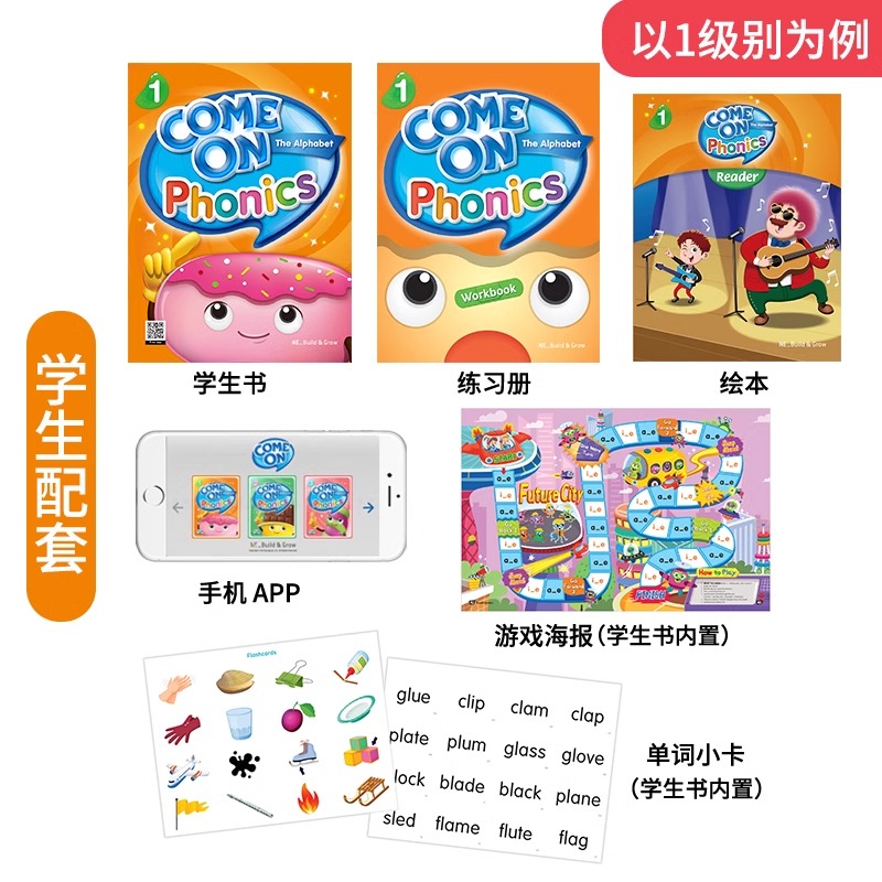 come 原版 phonics12345级phonics自然拼读教材幼小衔接儿童启蒙少儿英语幼少儿自然拼读发音教材配套读物送app阅读 斑达图书