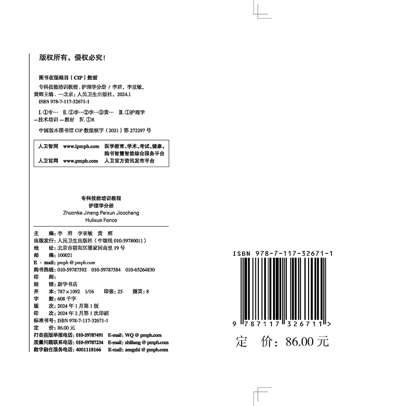 李亚敏 9787117326711 专科技能培训教程 社 人民卫生出版 黄辉 李君 创新教材 护理学分册 平装 现货正版