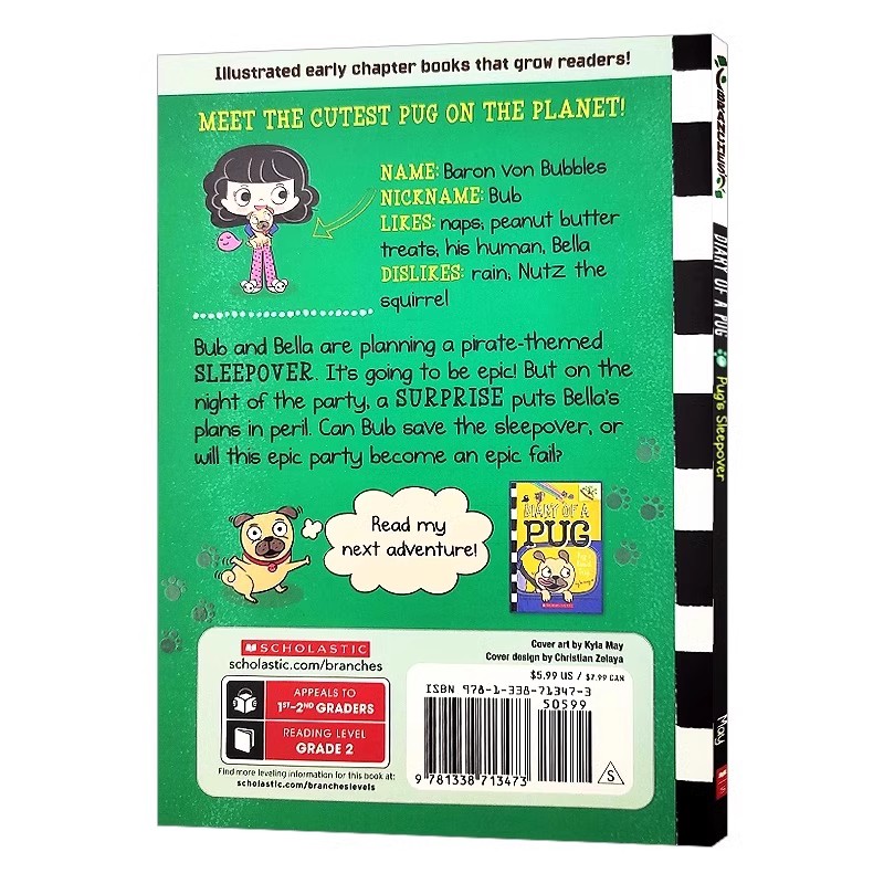 Scholastic Diary 英语全彩桥梁章节书图画故事书 学乐大树系列Branches Sleepover Pug 英文原版 哈巴狗日记6