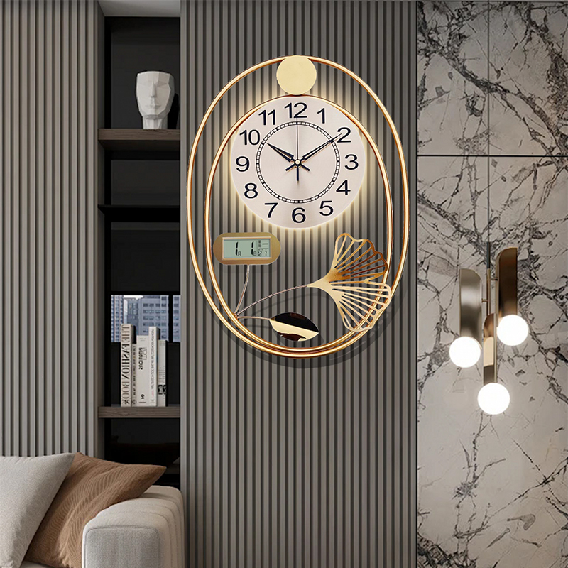 2025新款 格栅万年历挂钟表轻奢静音客厅电视背景墙灯光挂钟卧室表