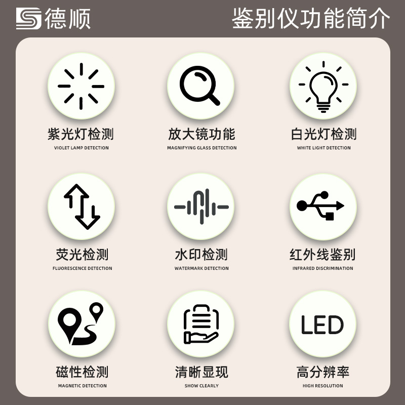德顺1818紫外激光放大镜鉴定专用多光谱带放大镜小型紫外荧光多种
