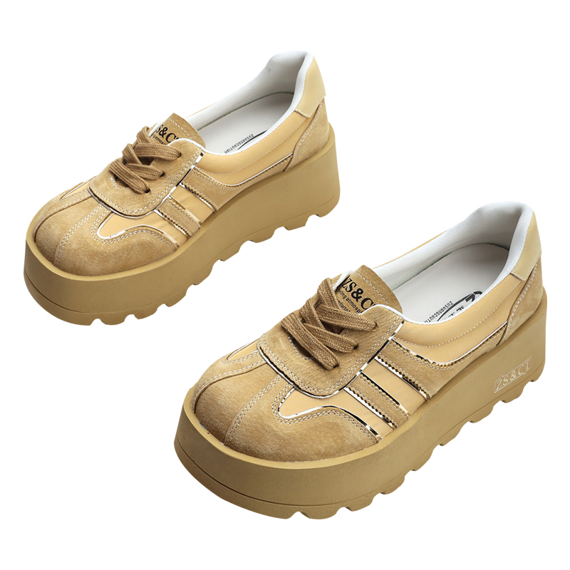 运动休闲增高单鞋 厚底乐福鞋 2025年百搭真皮透气勃肯爆款 新款 春季