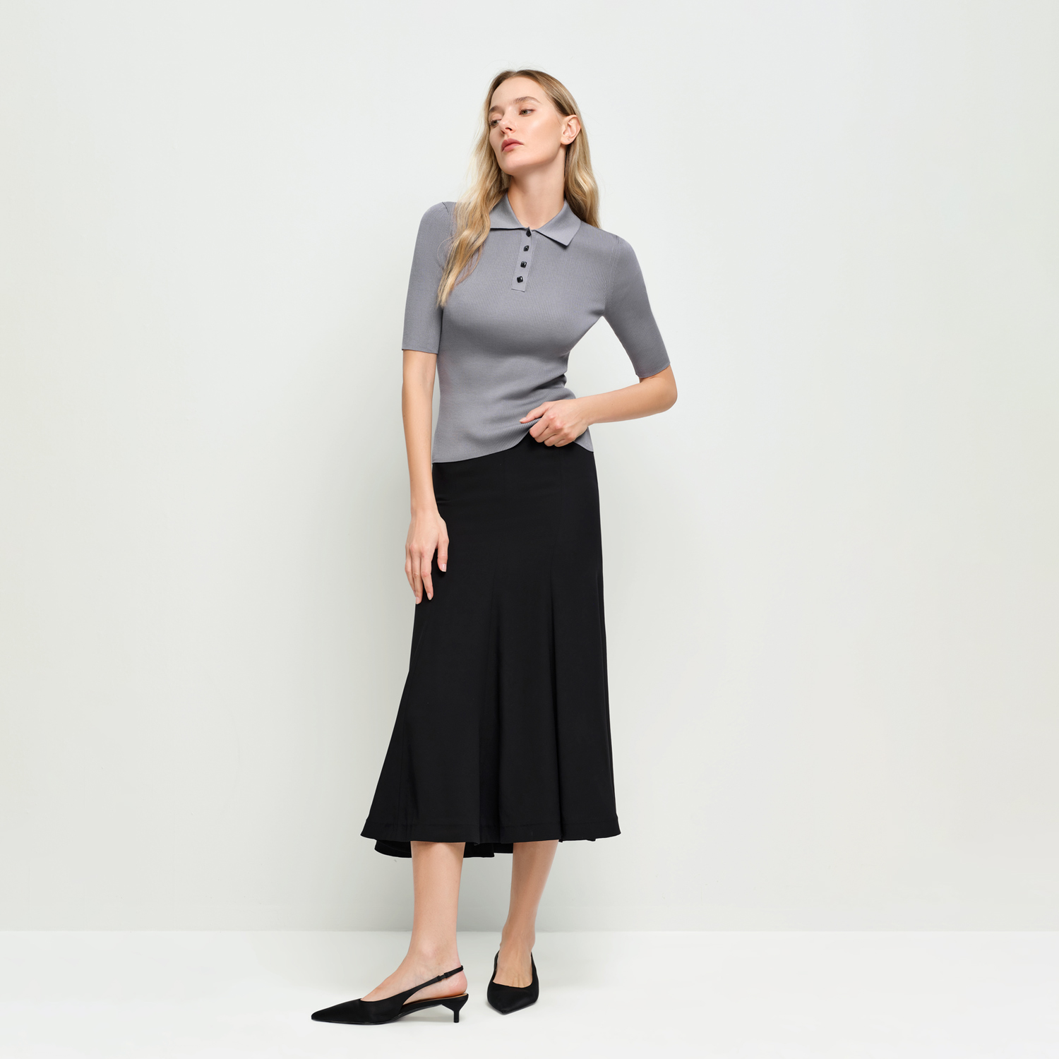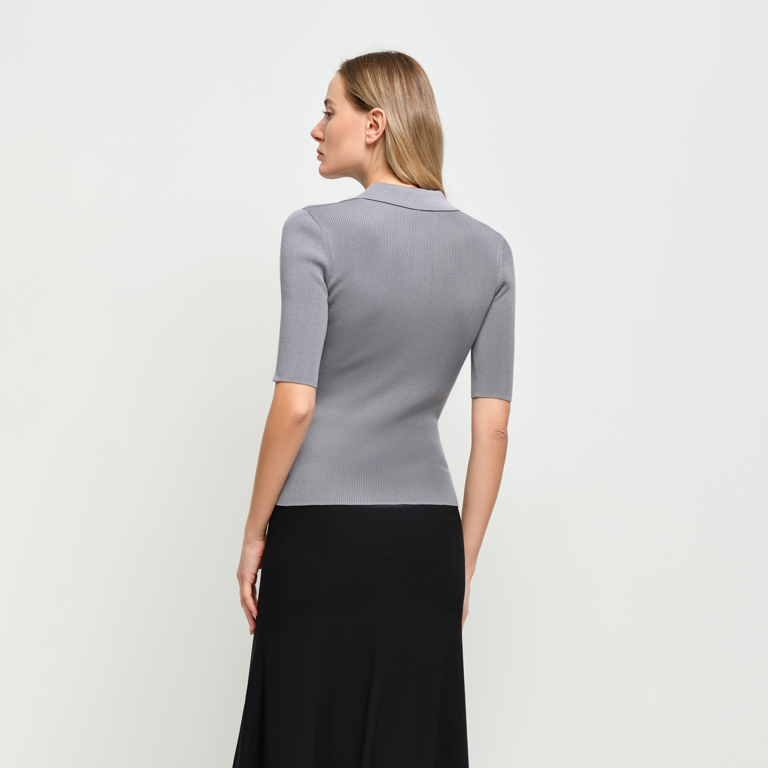 针织衫 淡人桑蚕丝POLO领舒适休闲短袖 女装 OVV2025春夏新款