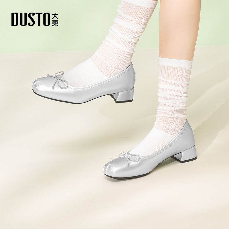 新款 女鞋 女士温柔蝴蝶结浅口单鞋 淑女平底单鞋 法式 热风2025年夏季