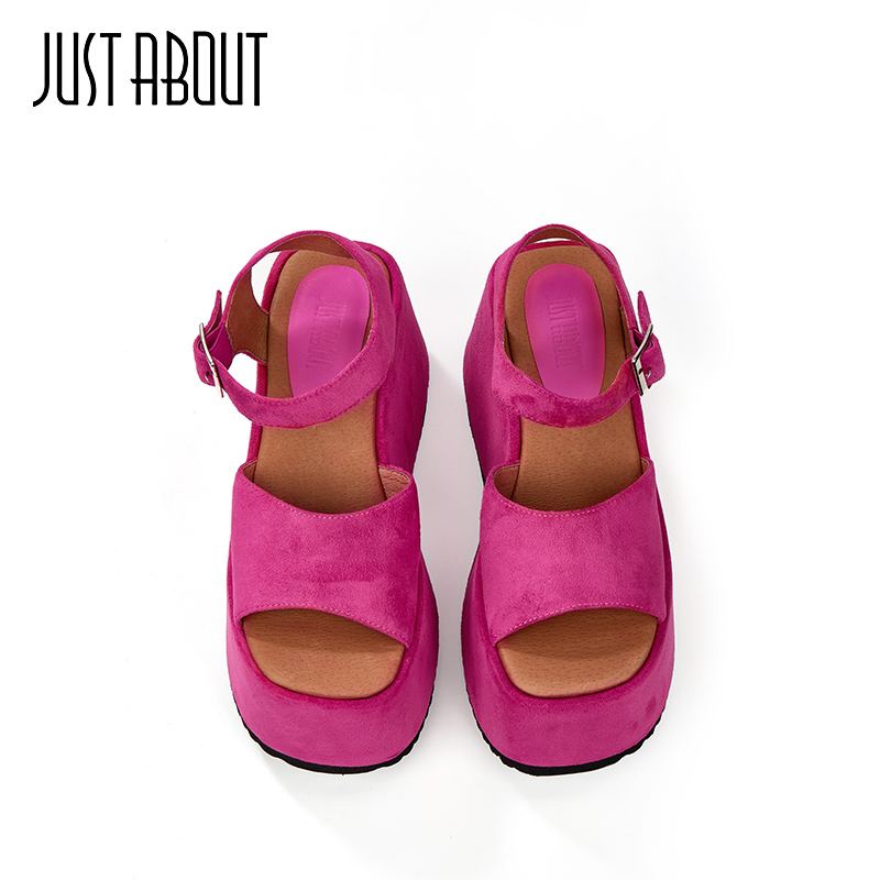 凉鞋 女坡跟时装 about2025复古玫红绒面小个子厚底增高跟鞋 just