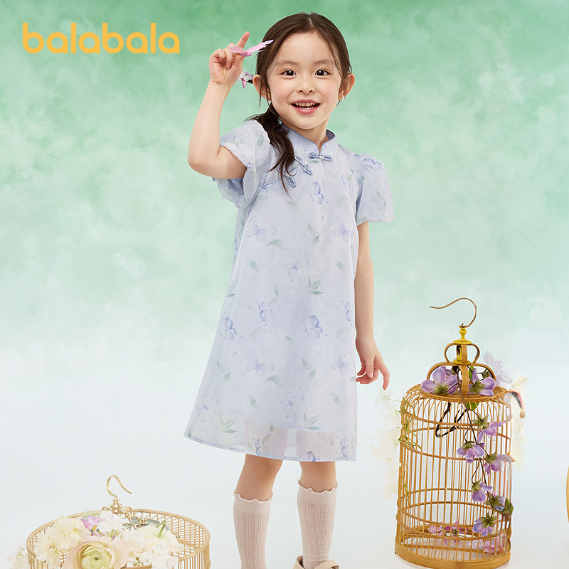 巴拉巴拉女童连衣裙2025新款 儿童裙子夏精致立领国风连衣裙新中式