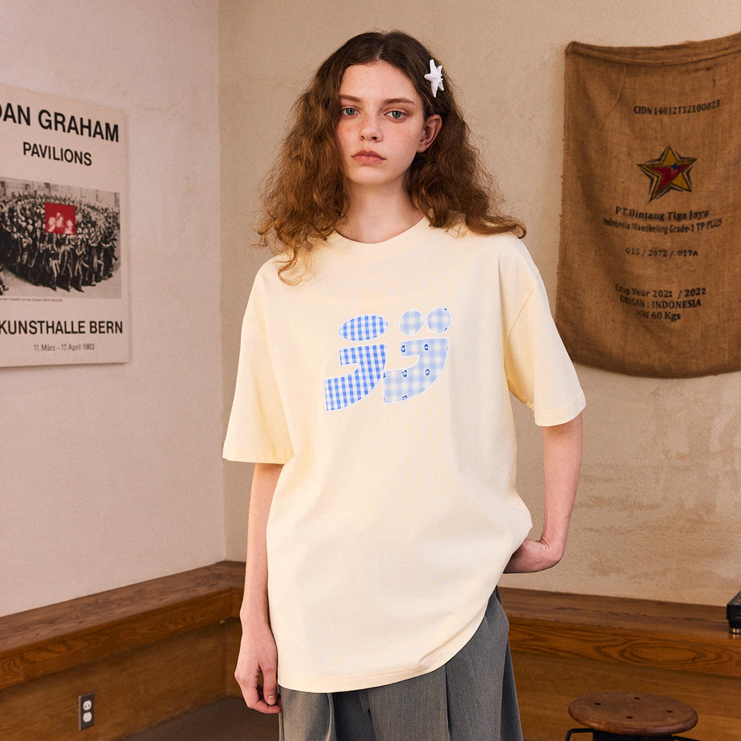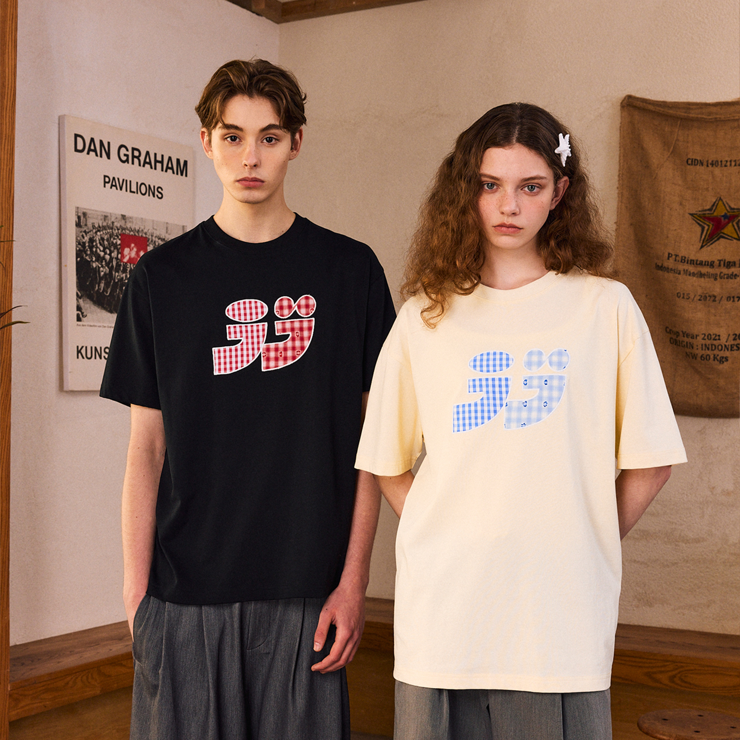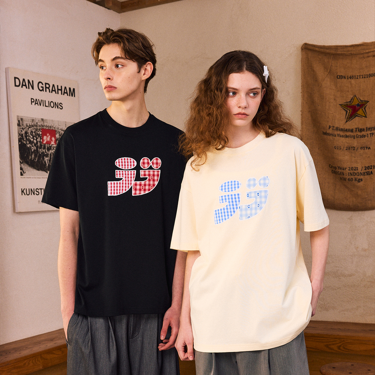 半袖 宽松印花重磅圆领五分袖 国潮夏季 RASS基础逗号格子绣花短袖