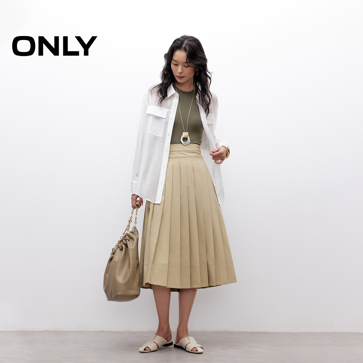 ONLY2025夏季 建筑感挺阔面料遮胯显瘦A字中长裙百褶半身裙女 新款