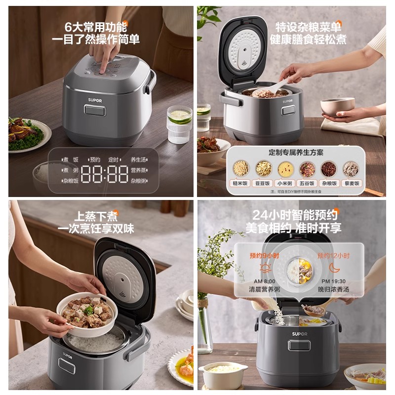 苏泊尔电饭煲家用小型2L耐磨0涂层316L内胆功能智能预约煮饭锅