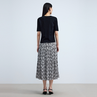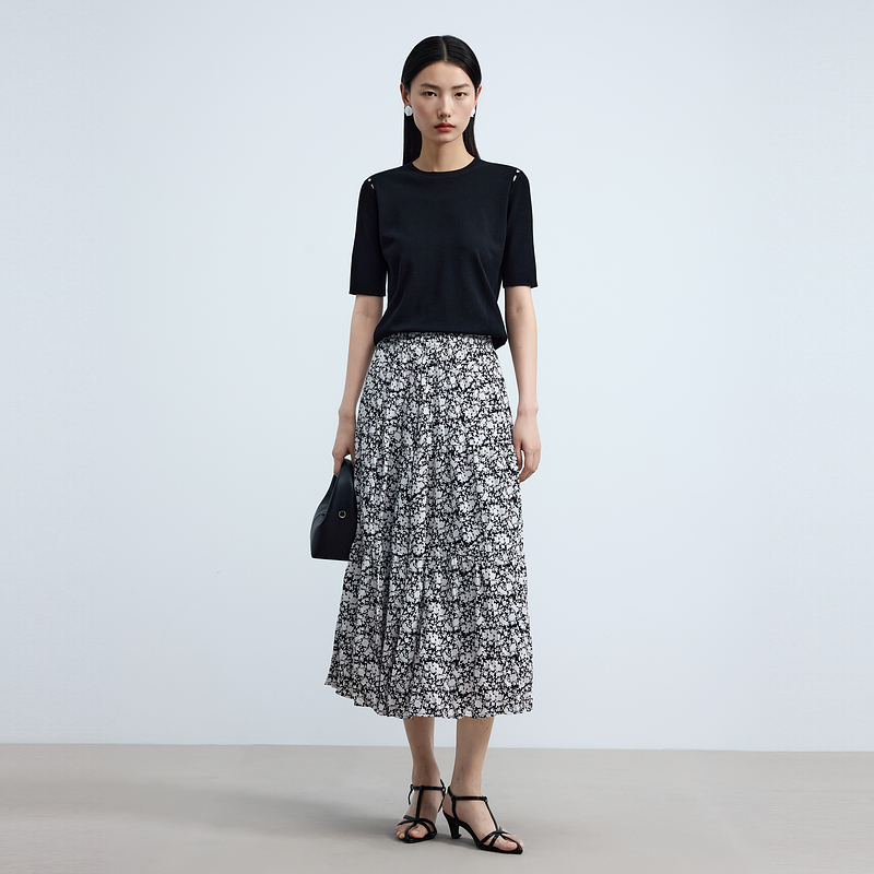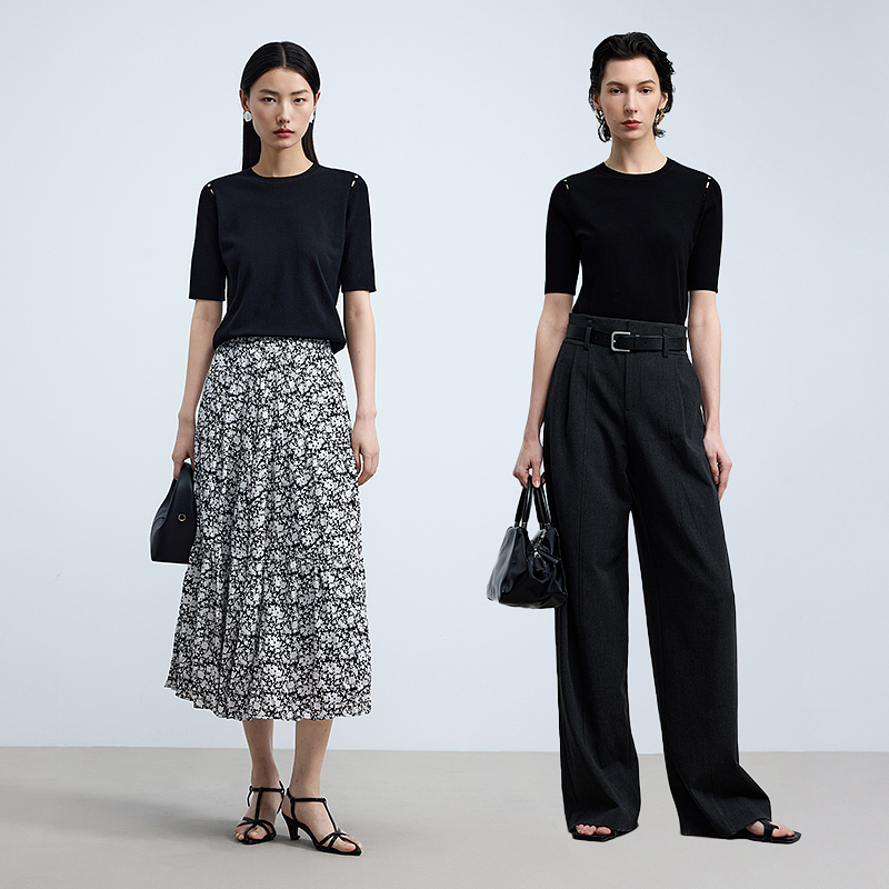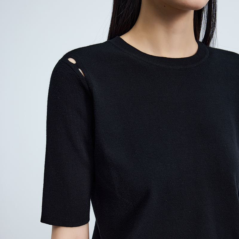 新款 水云间女装 2025春季 针织衫 圆领休闲简约肩部镂空设计修身