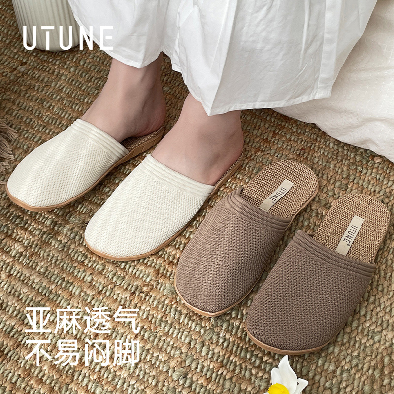 布艺棉麻家居木地板静音室内不沾灰拖鞋 包头四季 亚麻拖鞋 优调日式