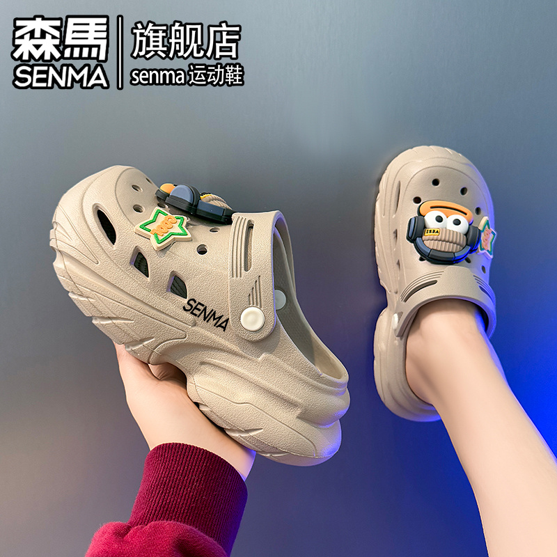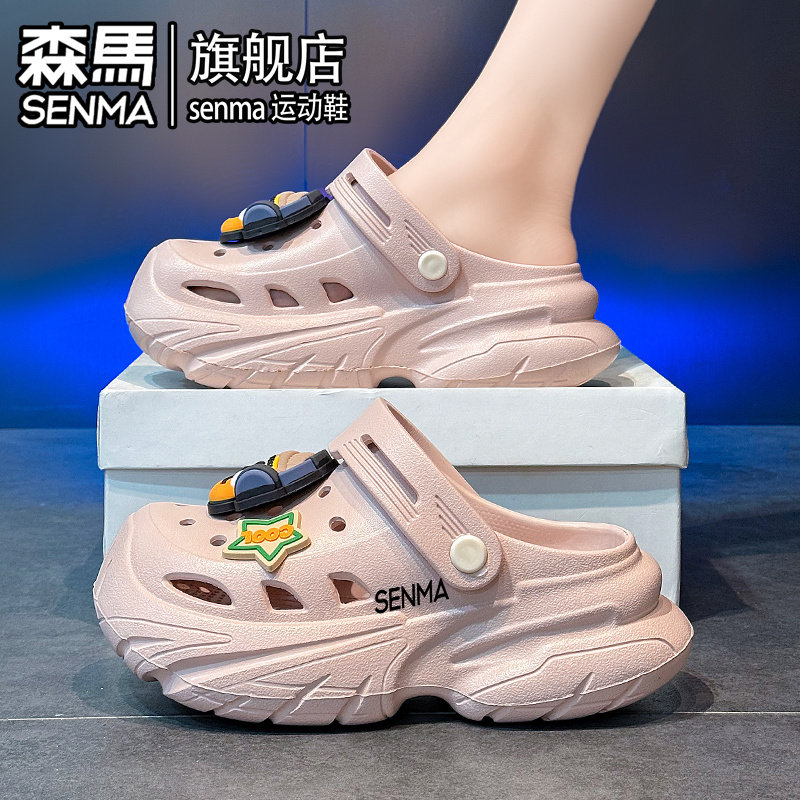 防滑防臭沙滩凉鞋 踩屎感外穿厚底增高包头拖鞋 女生夏季 森马洞洞鞋