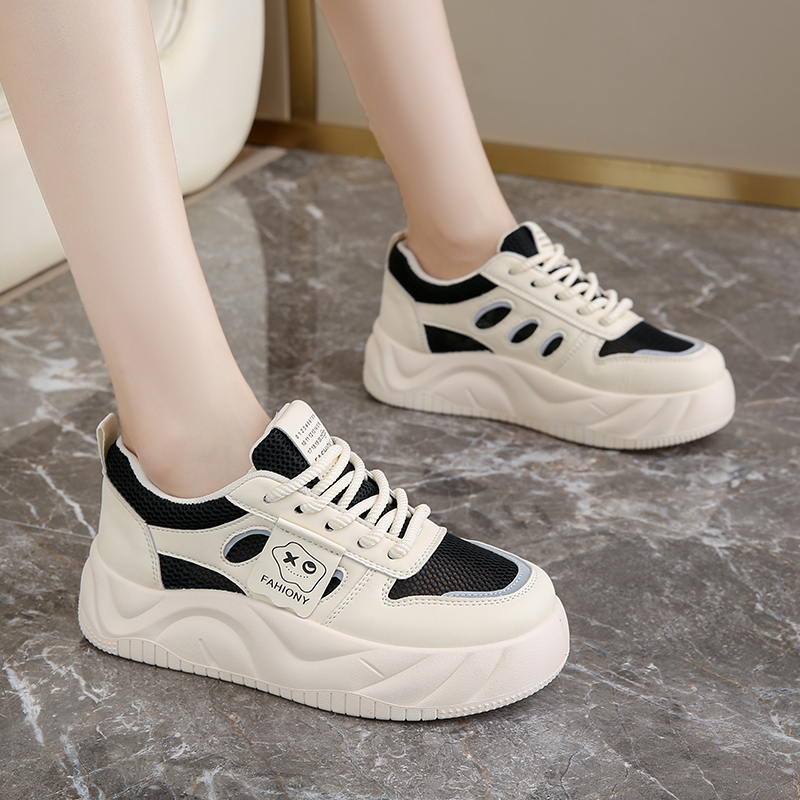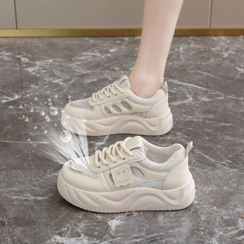 女2025新款 轻便运动面包鞋 夏季 网面透气板鞋 爆款 踩屎感真皮小白鞋