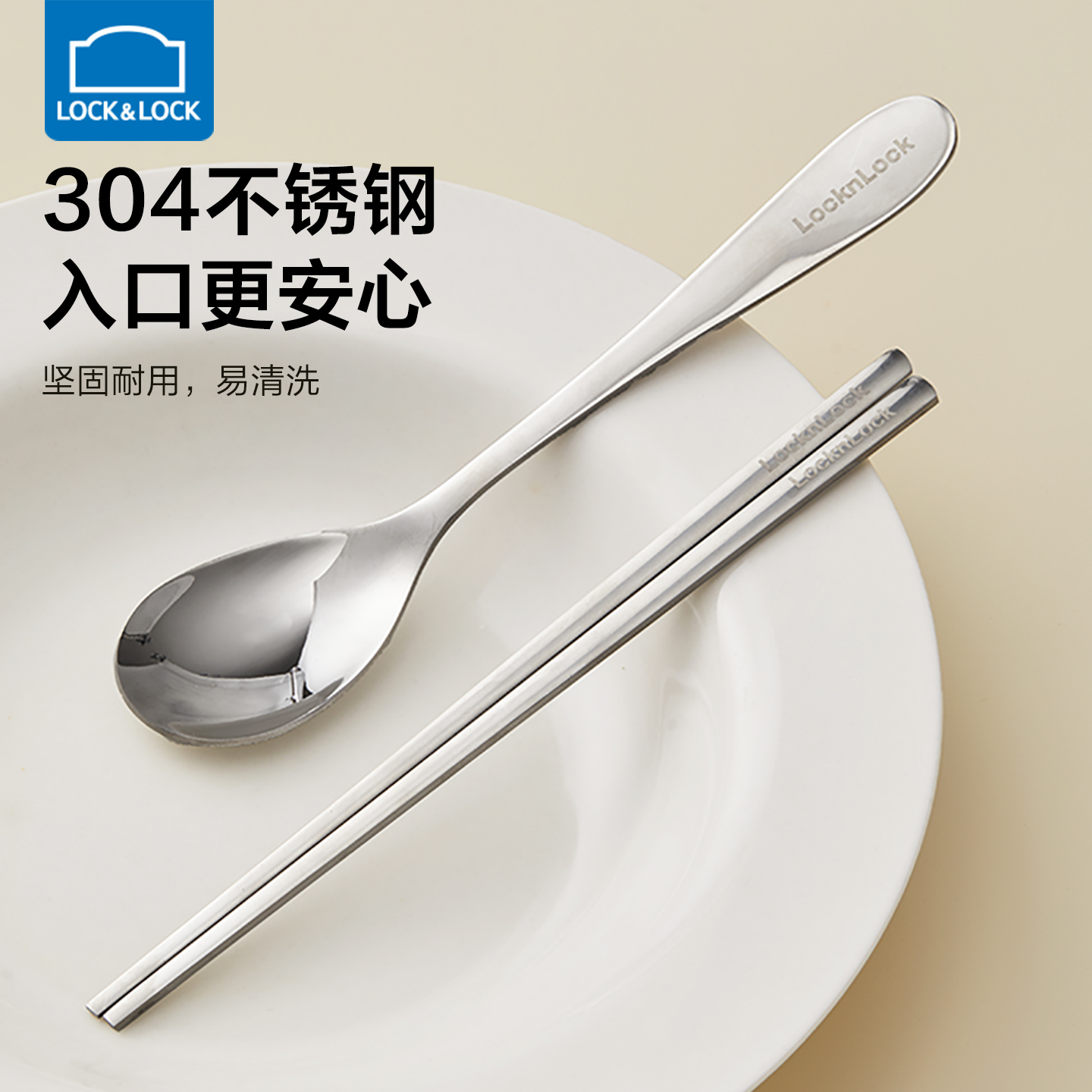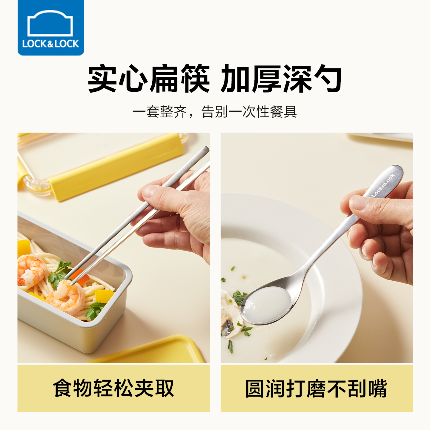 乐扣乐扣筷子勺子套装 餐具上班族一人用餐筷带收纳盒 学生便携式