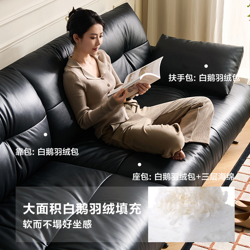 全友家居意式 极简黑色真皮沙发小户型客厅中古风直排头层牛皮沙发