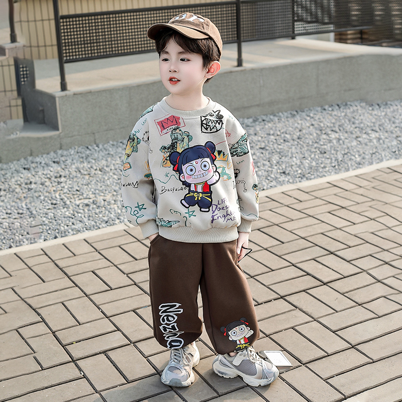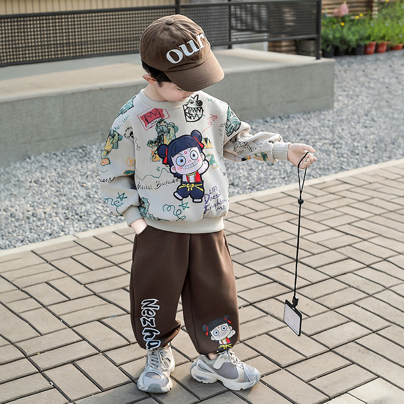 宝宝痞帅男孩时髦儿童卫衣两件套 2025新款 哪吒衣服男童春秋装 套装