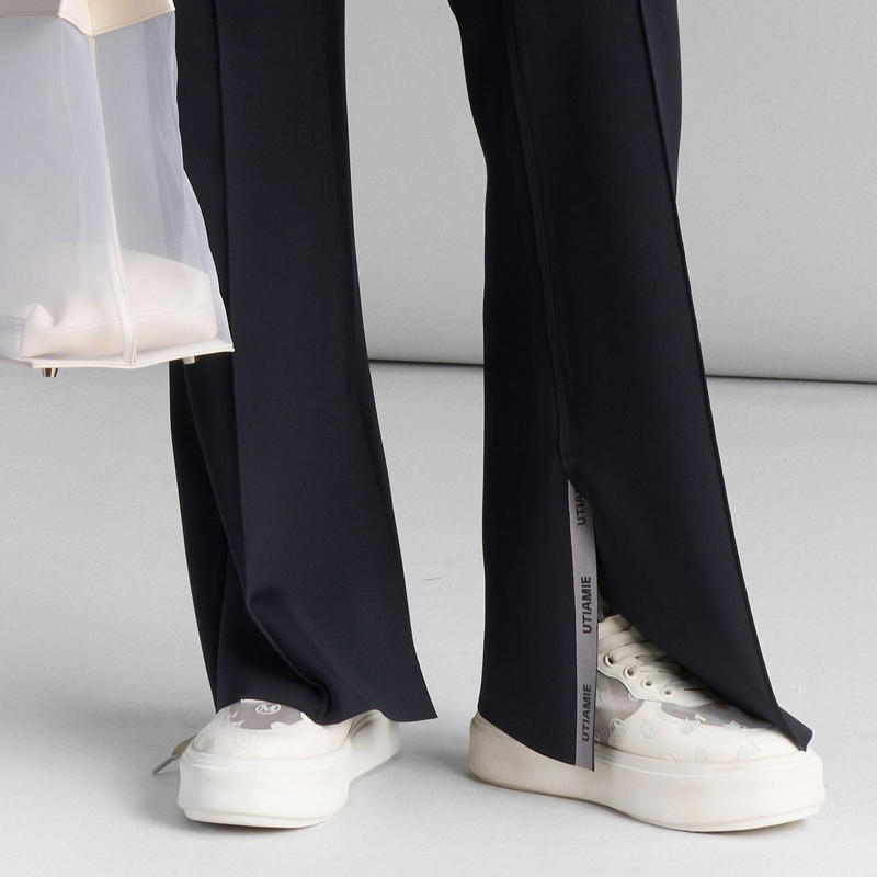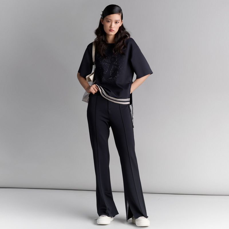 TI黑色开衩垂感微喇裤 新款 女装 尤缇2025夏季 百搭简约显瘦休闲裤