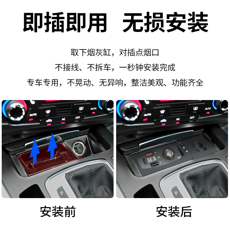 隐藏车载充电器66W 120W超级快充汽车点烟器转换插头一拖三PD快充