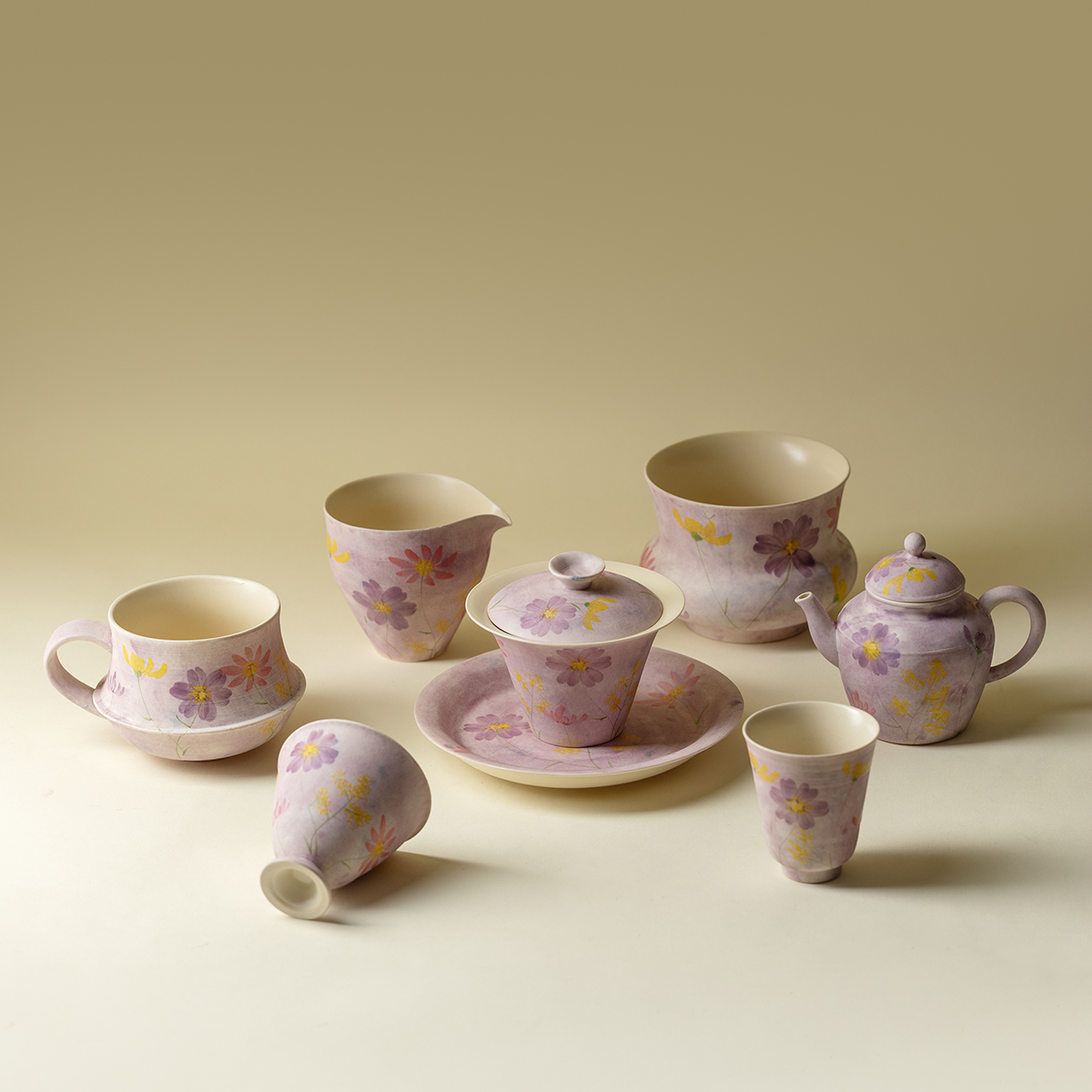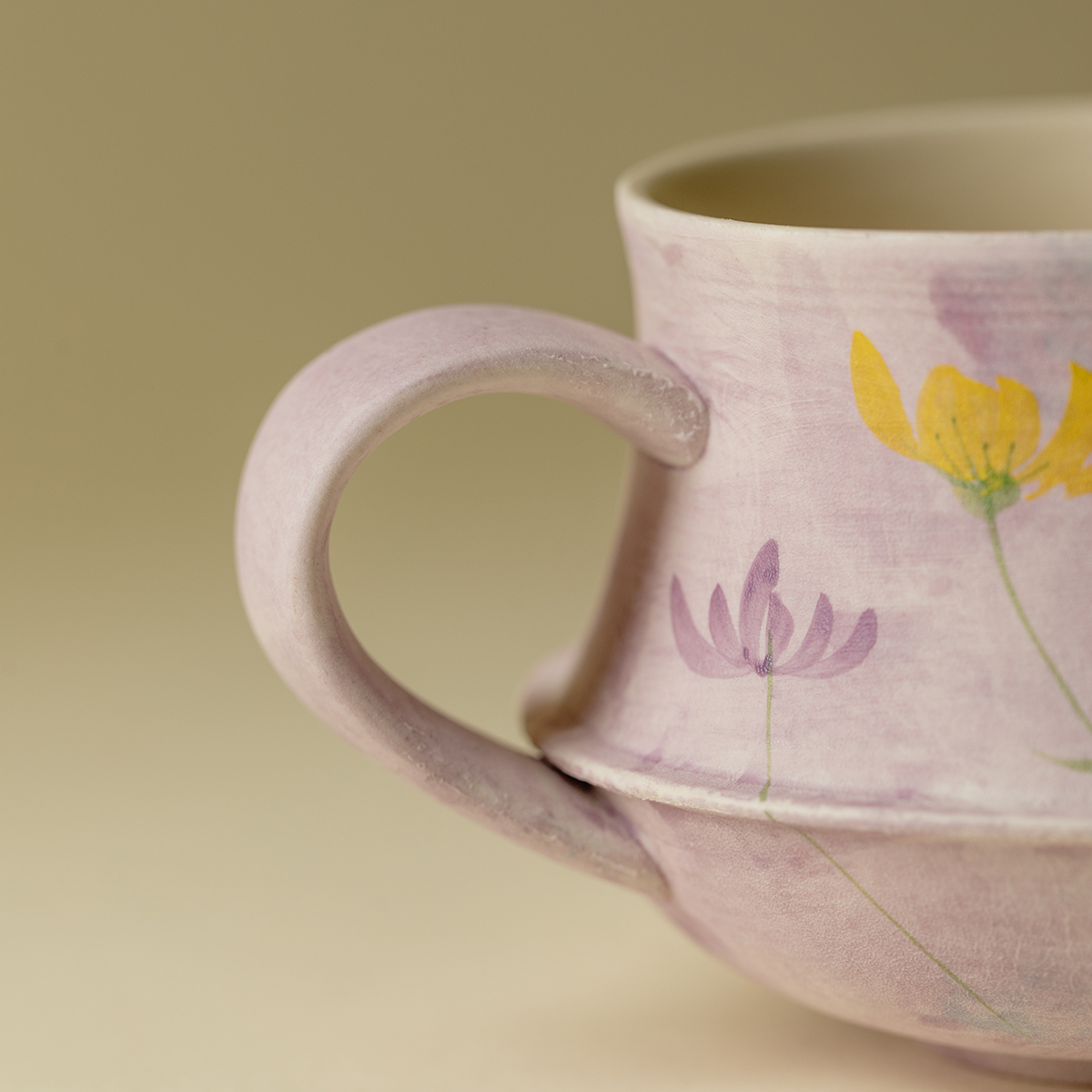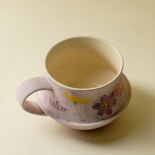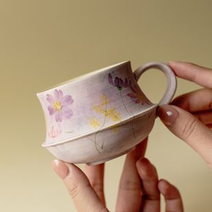 弥溪手工油画紫花繁路野花束咖啡杯个人专用复古下午茶杯茶道配件