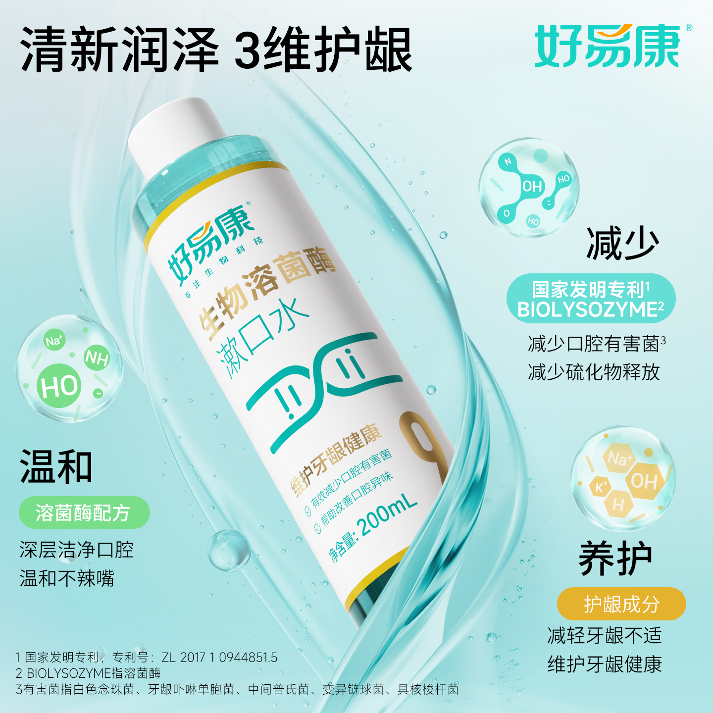 好易康护龈漱口水200ml溶菌酶9号维护牙龈抑制牙菌斑清新口气正品