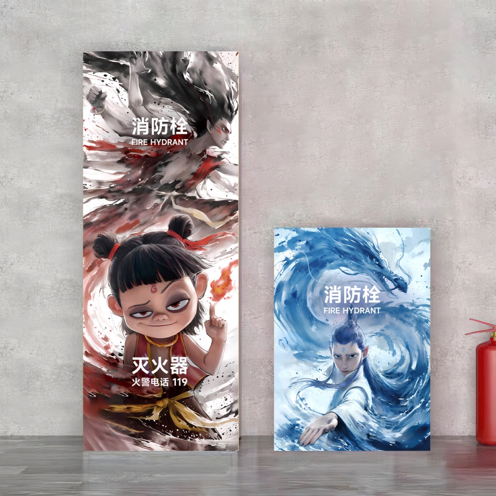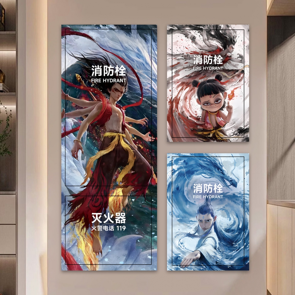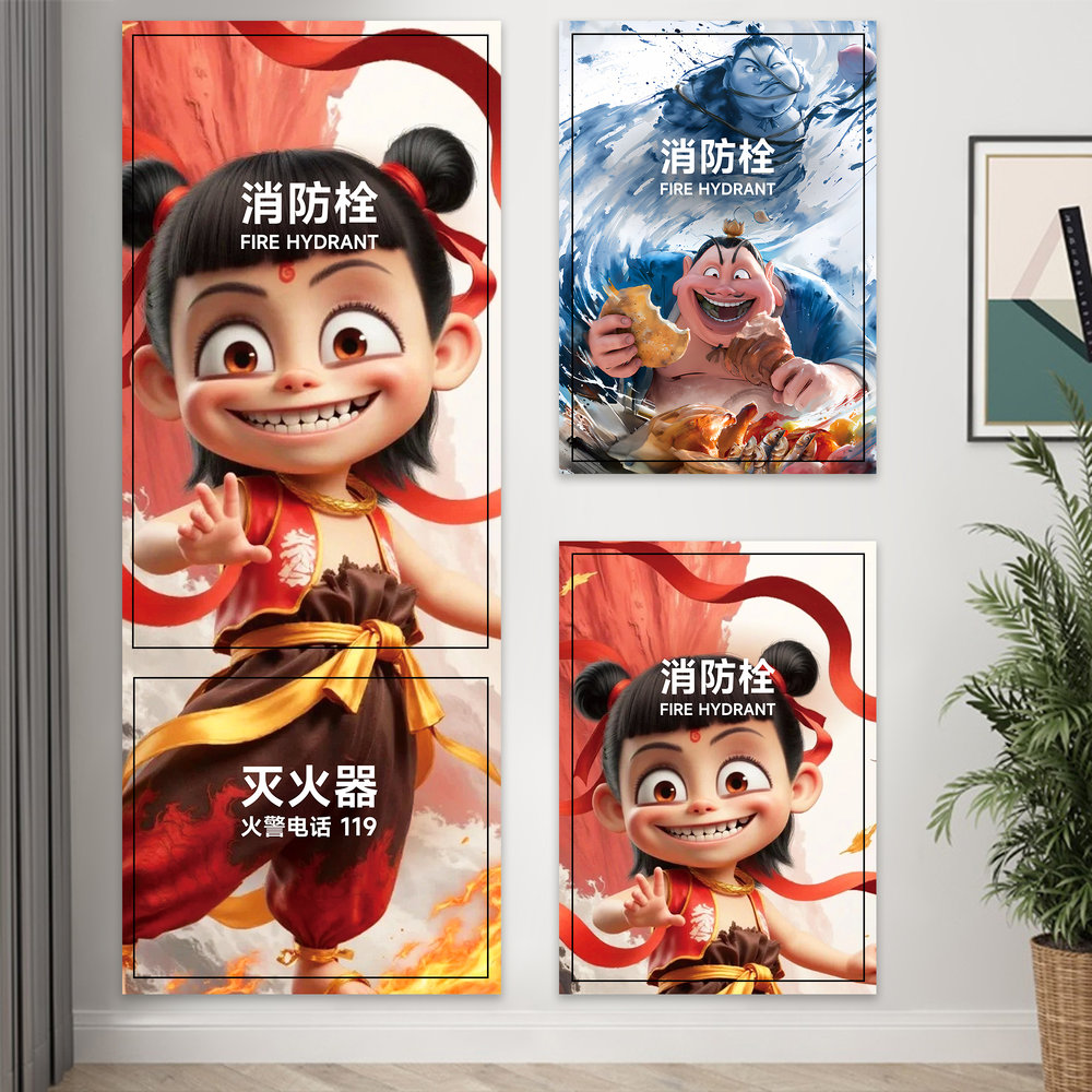 哪吒咤消防栓贴纸装 饰遮挡美化消火栓门箱墙贴标识柜门贴画遮丑