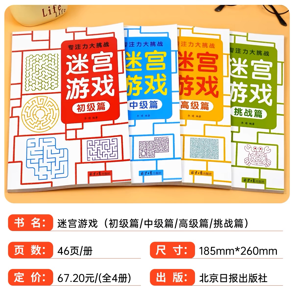 迷宫游戏启蒙青少思维开发高级挑战篇思维逻辑训练全4册 儿童小学生青少益智思维开发注意力专注力游戏图迷宫书 基础中级提高挑战