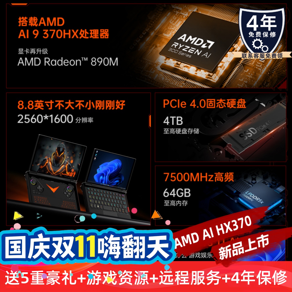 370轻薄AI 壹号本OneXPlayer PC笔记本电脑 G1迷你电竞游戏本游戏掌机可拆卸键盘8.8英寸触控三合一AMD