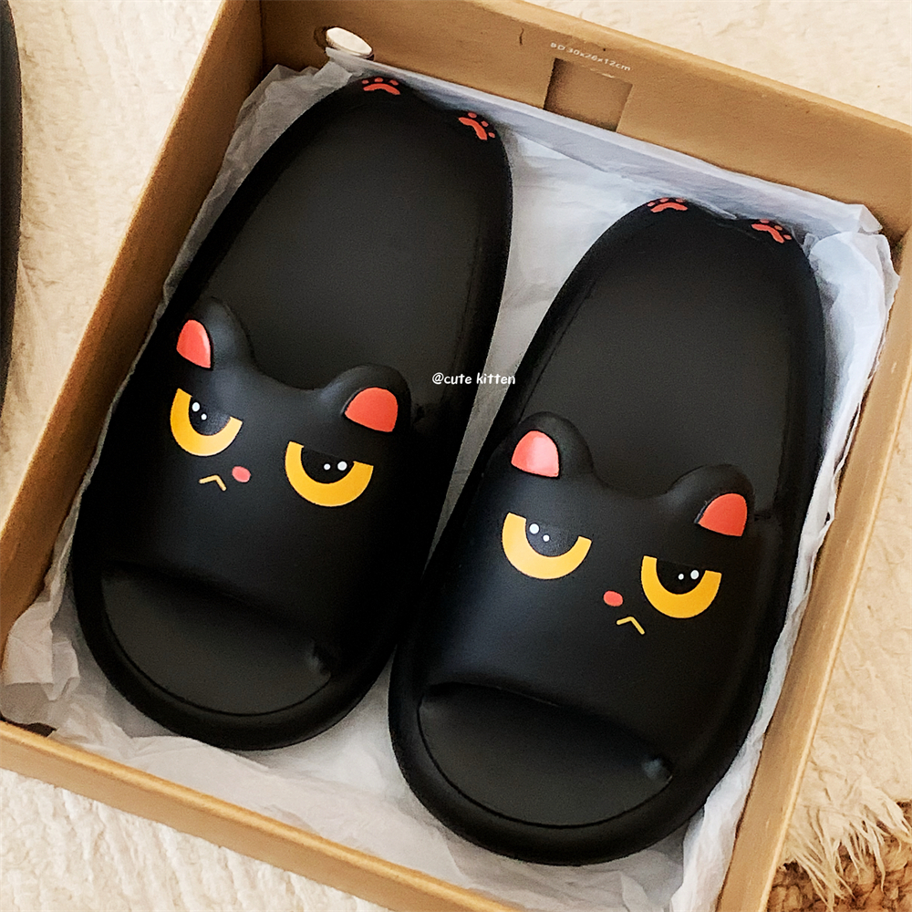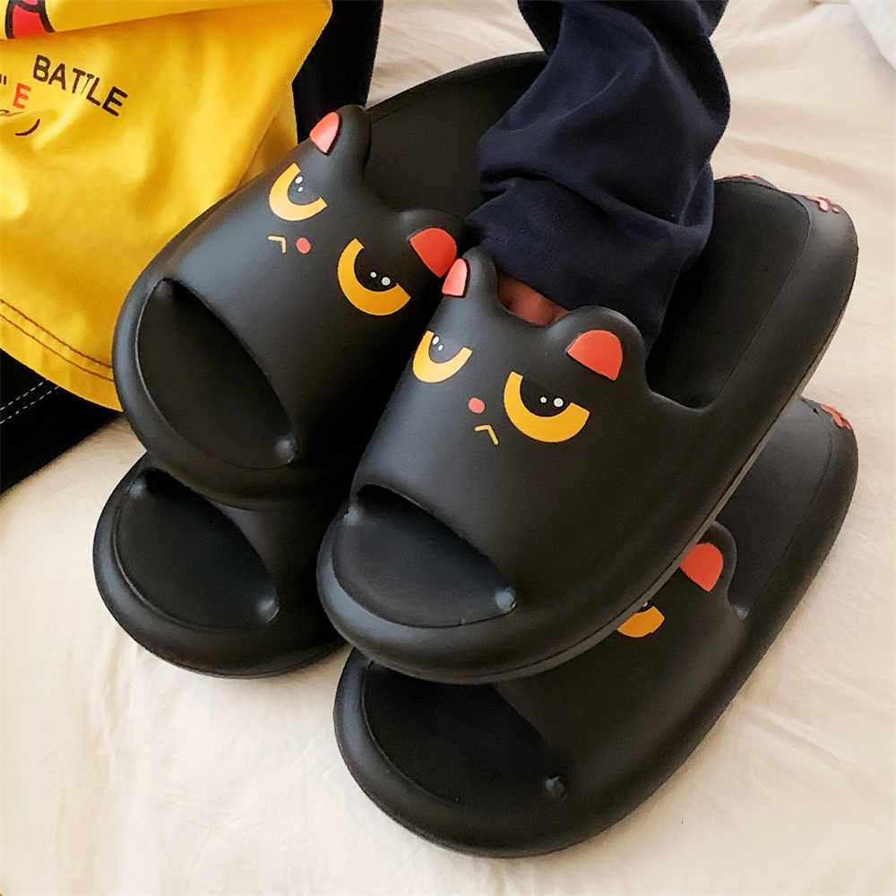 居家一字拖鞋 休闲生气小黑猫凉拖鞋 男女士学生浴室室内外情侣夏季