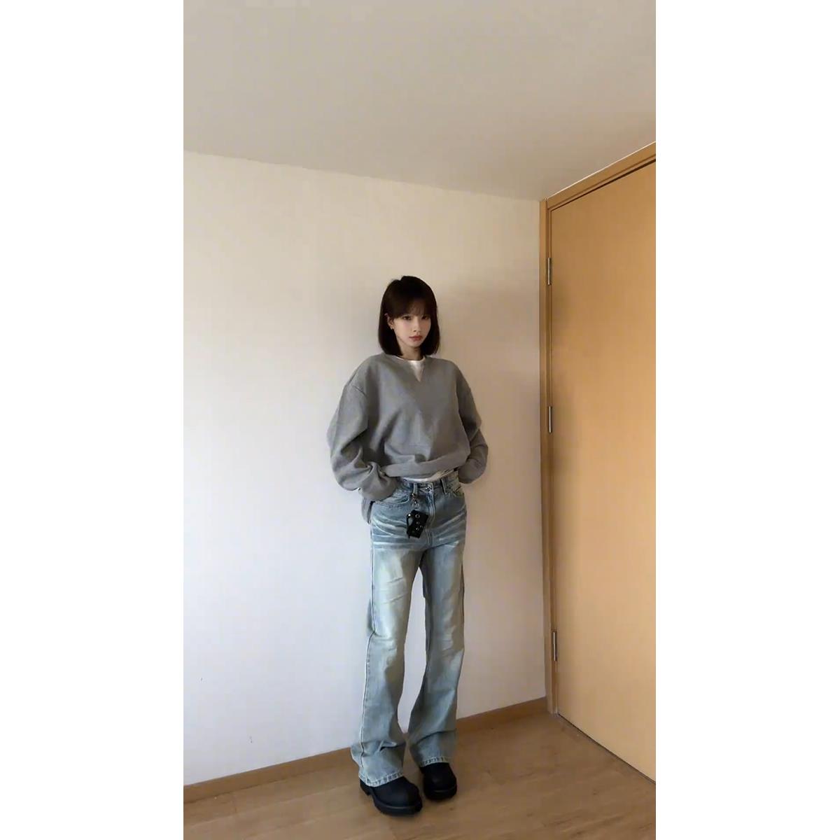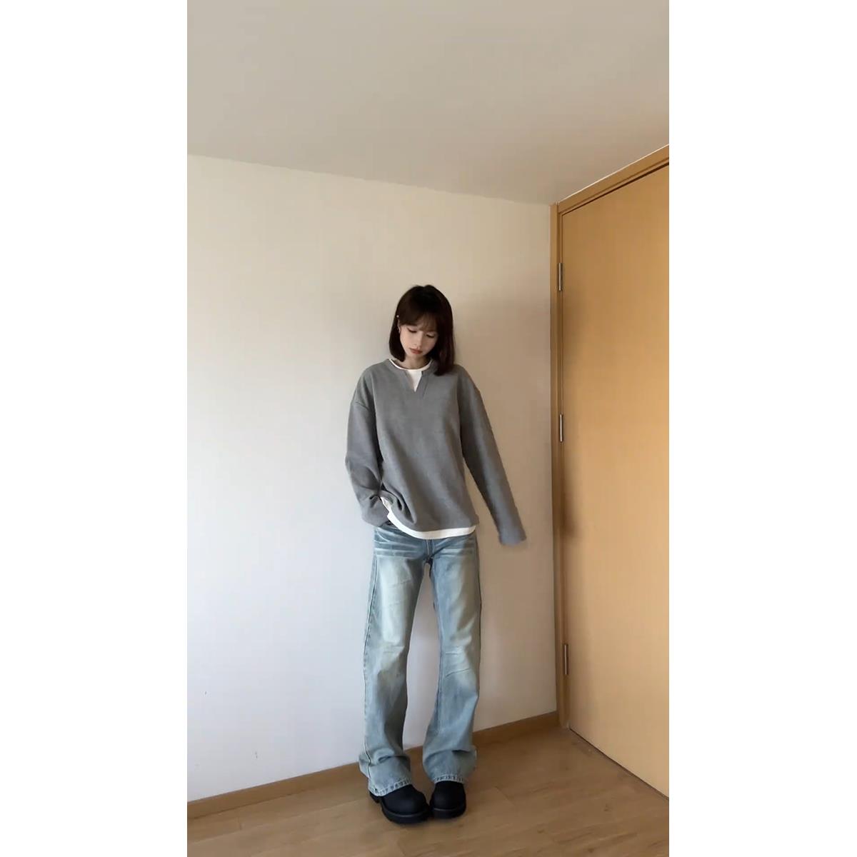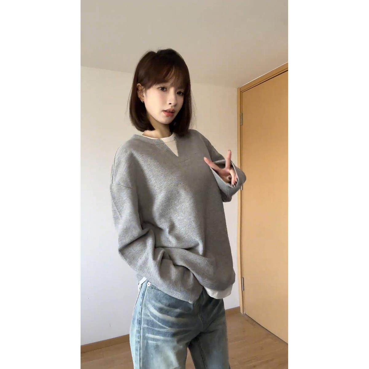 情侣休闲卫衣 重磅打底衫 假两件v领长袖 t恤男cleanfit潮流百搭春季