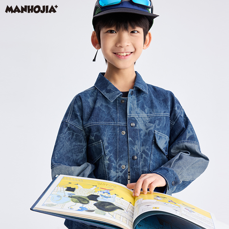 中大童外套 儿童牛仔外套手工扎染工装 马拉丁漫画家 水墨牛仔