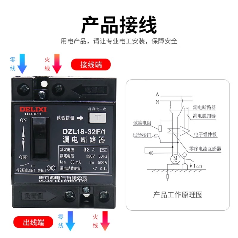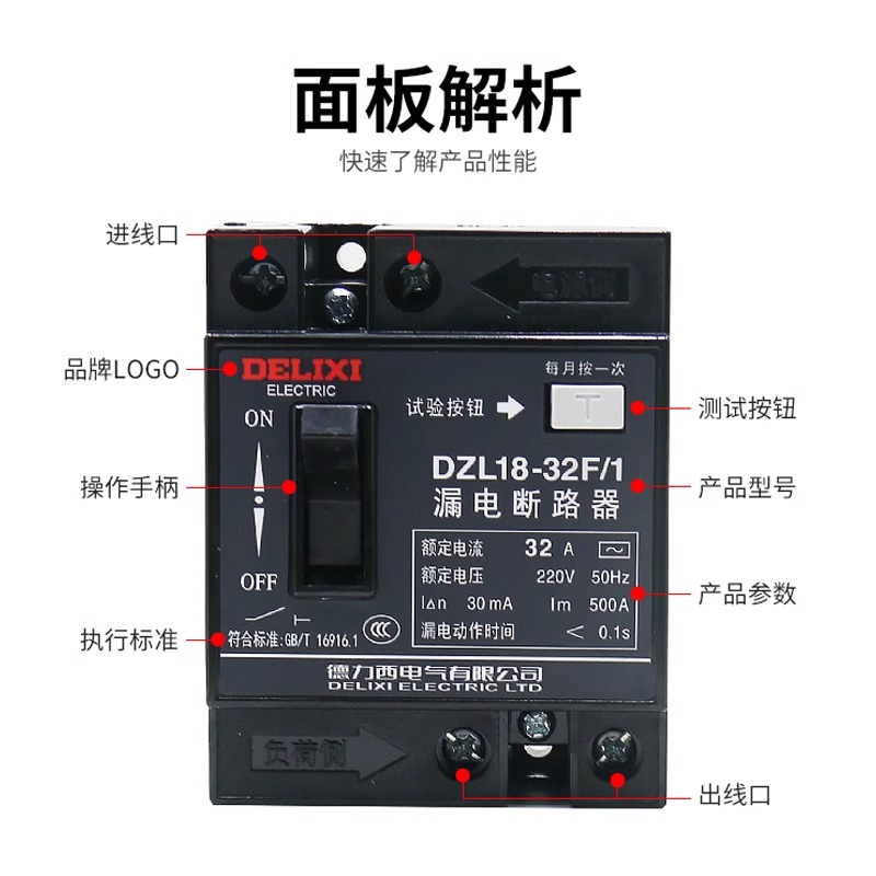 德力西电气DZL18 32F漏电开关保护器32A漏保20A塑壳断路器2P老款