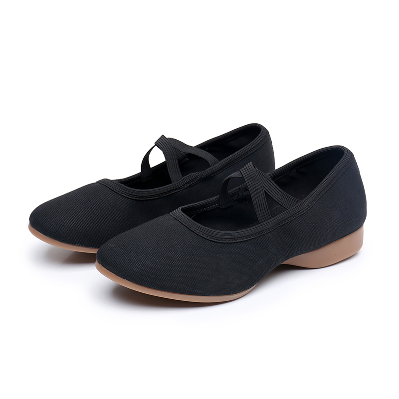 专用室内跳舞鞋 舞蹈鞋 带跟软底练功鞋 新款 黑色形体 女成人古典舞鞋