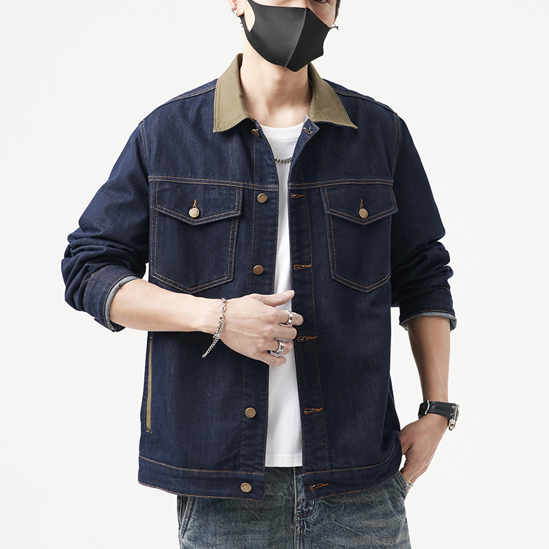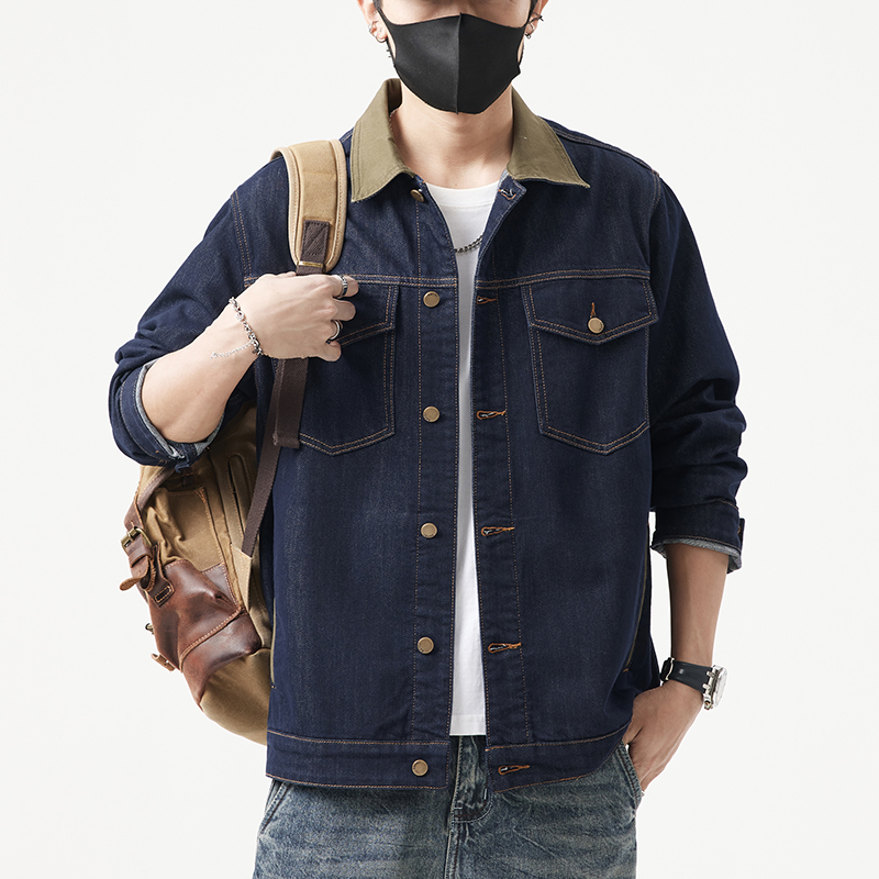男装 丹宁牛仔外套男蓝色翻领夹克男士 宽松休闲潮胖子加肥加大大码