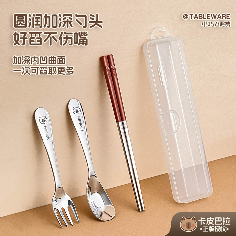 口红筷子旅行随身折叠伸缩便携餐具套装 一人用盒户外露营学生勺子