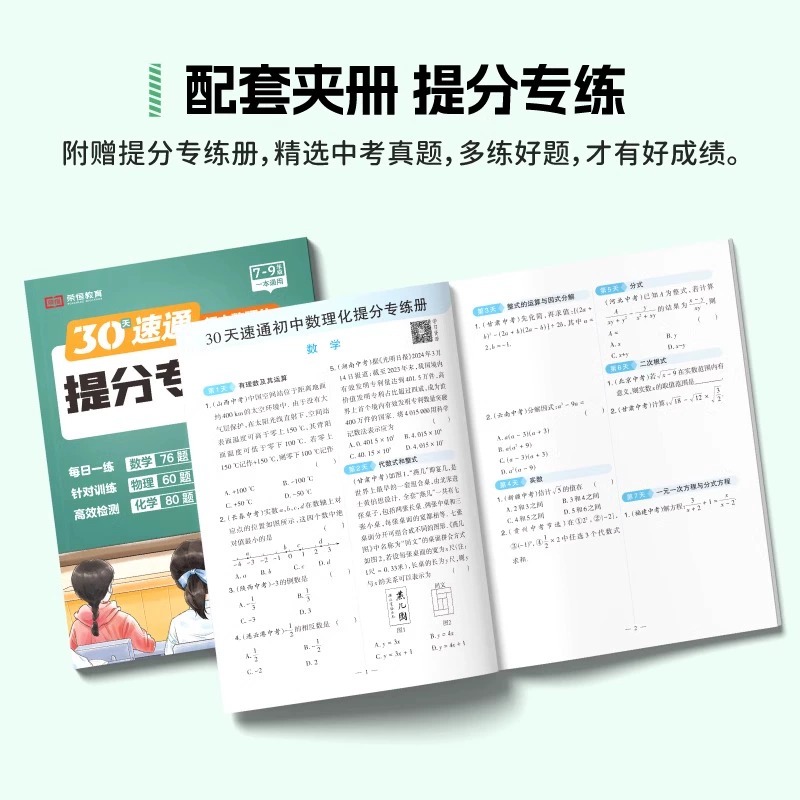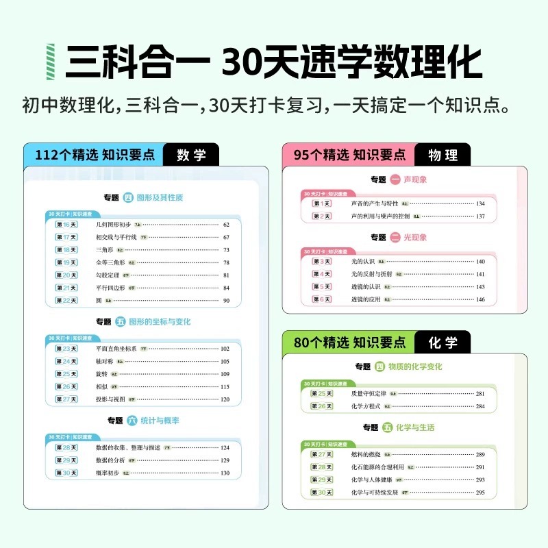 中考思维导图30天速记总复习资料初中生定律初一二三知识清单大盘点全荣恒 人教版 2025新版 初中数理化一本通数学物理化学考点及公式
