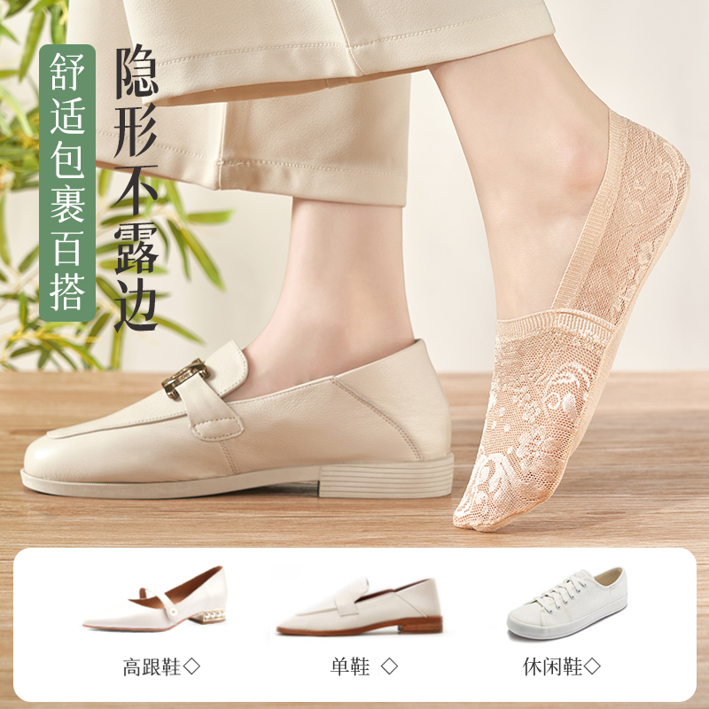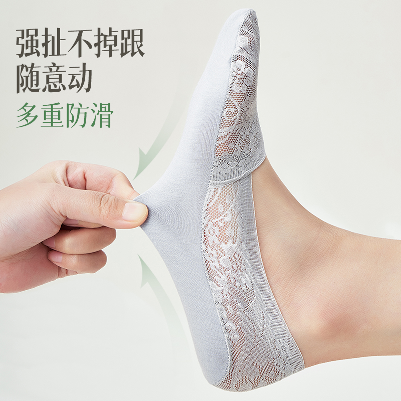 船袜女脚底棉质吸汗透气蕾丝隐形袜浅口不掉跟硅胶防滑春夏季 袜子