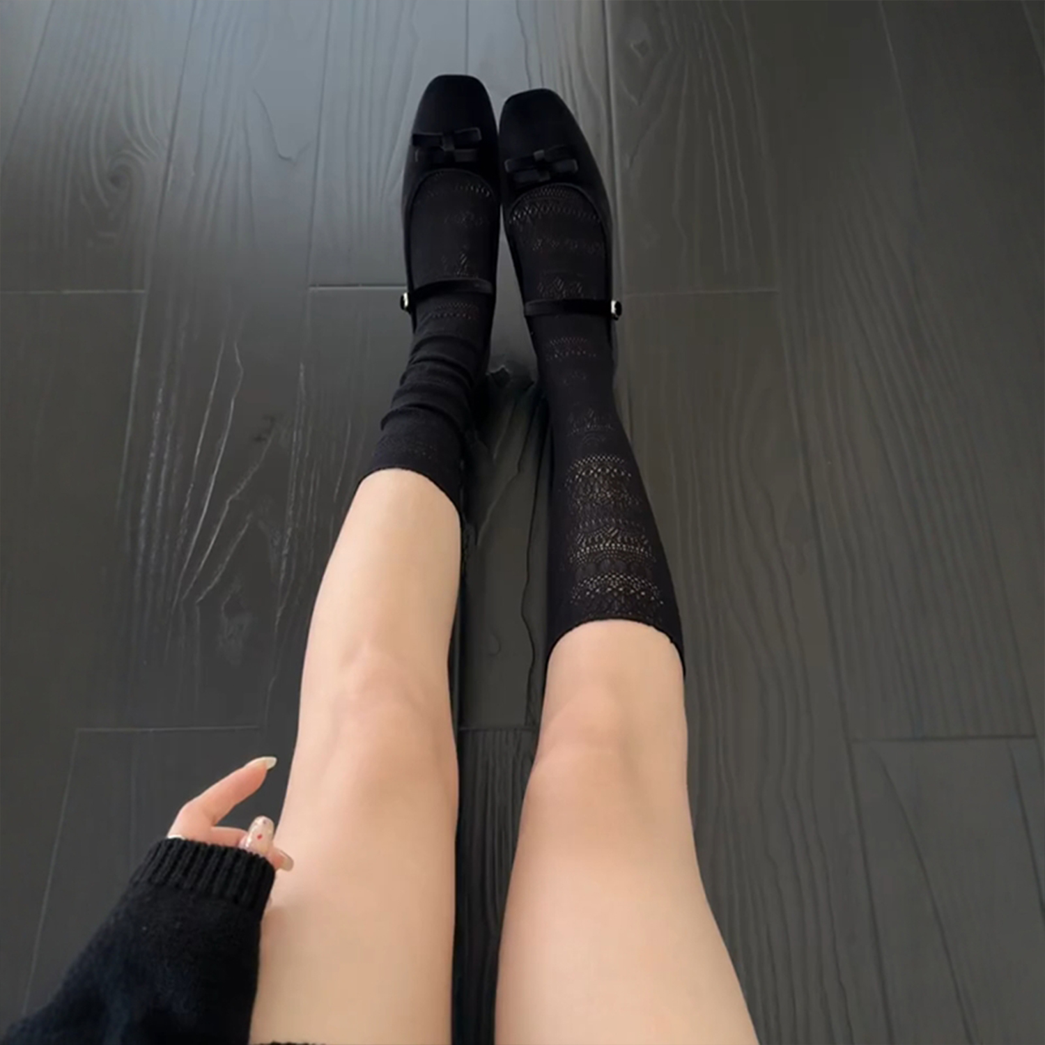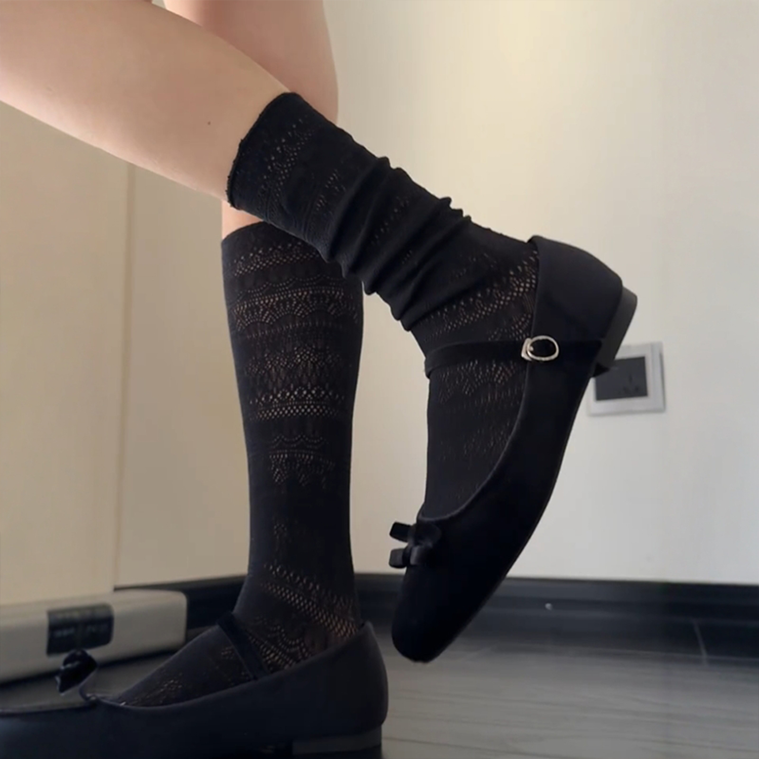 芭蕾风蕾丝小腿袜子女夏季 网眼袜透气堆堆袜miu系袜子长筒袜 薄款